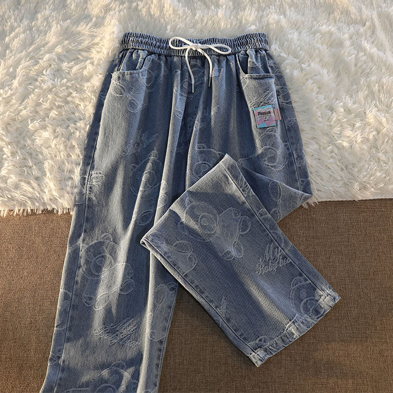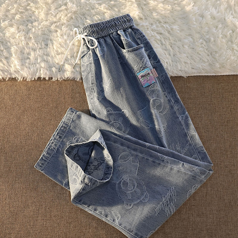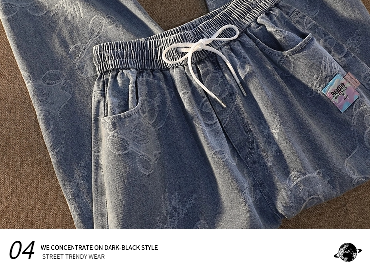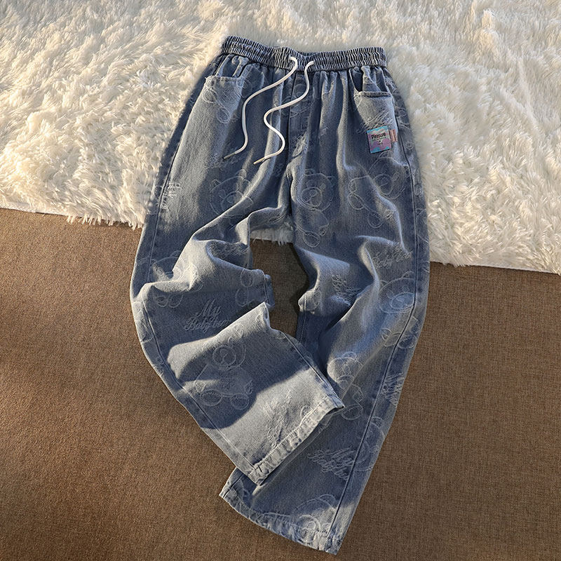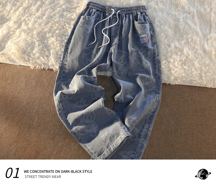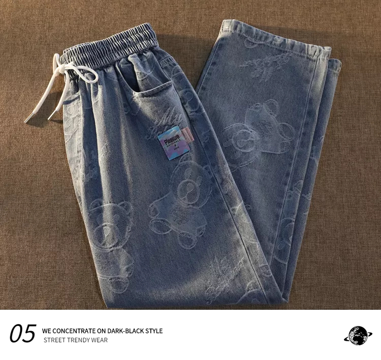 Tide, джинсы подходит для мужчин и женщин, штаны, с медвежатами, в американском стиле, свободный прямой крой