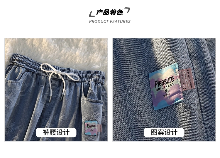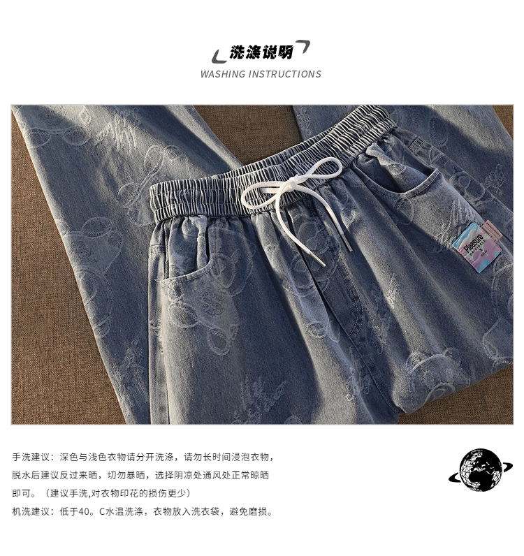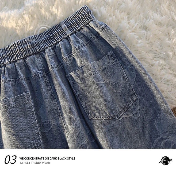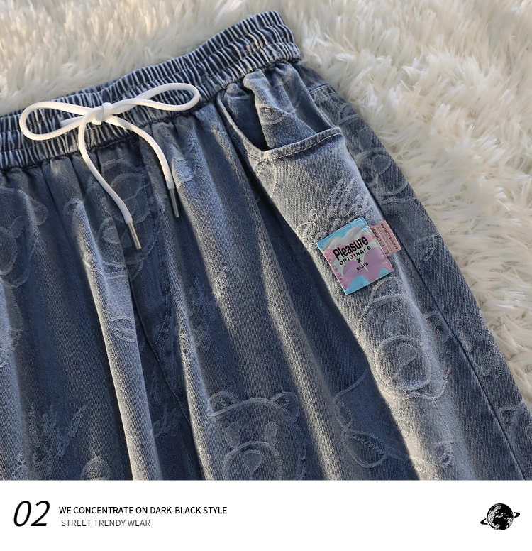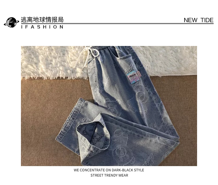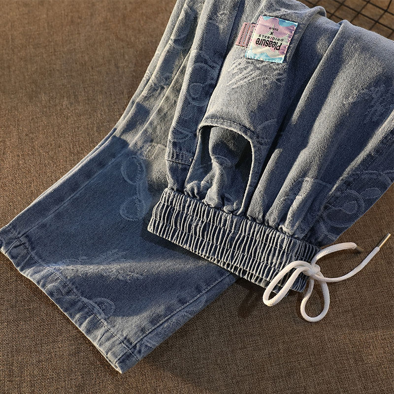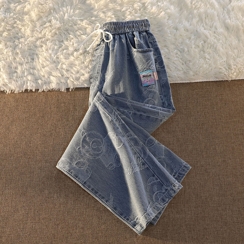Tide, джинсы подходит для мужчин и женщин, штаны, с медвежатами, в американском стиле, свободный прямой крой