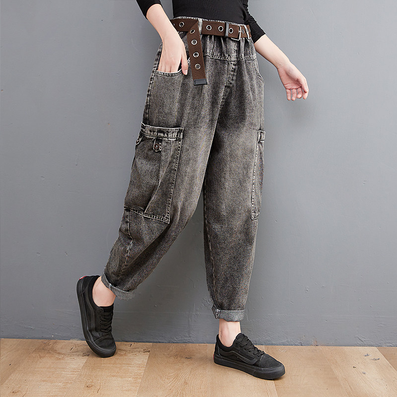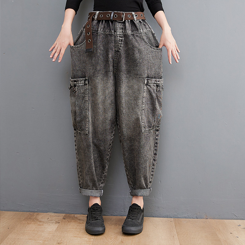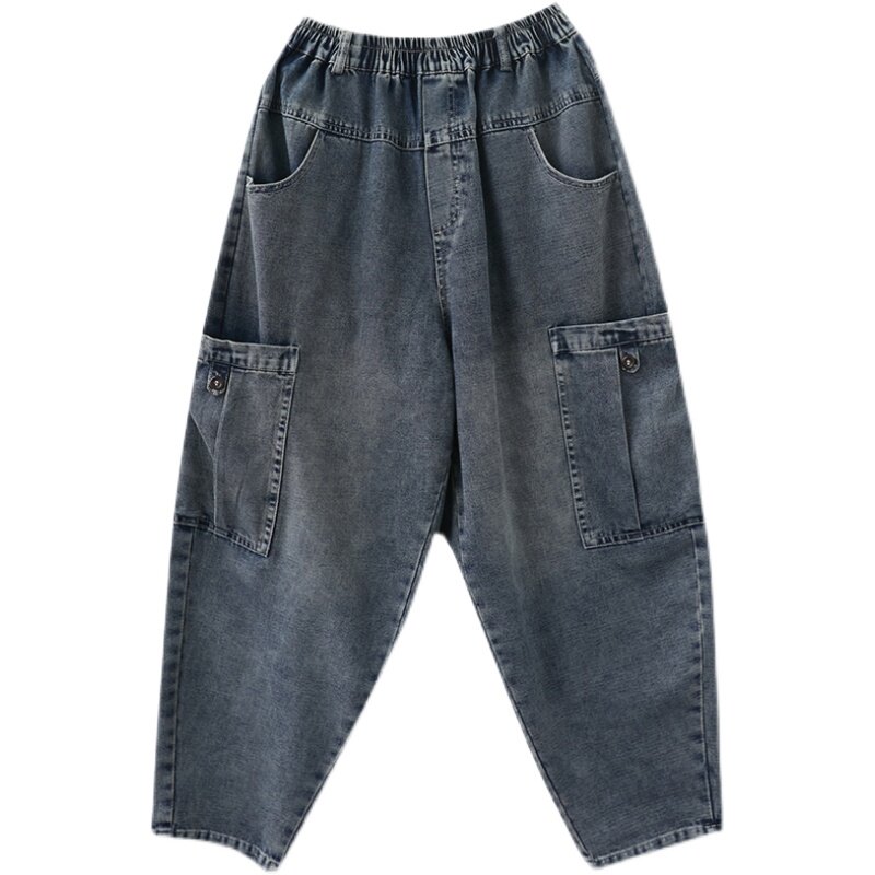 Ретро джинсовые осенние штаны для отдыха, оверсайз, большой размер