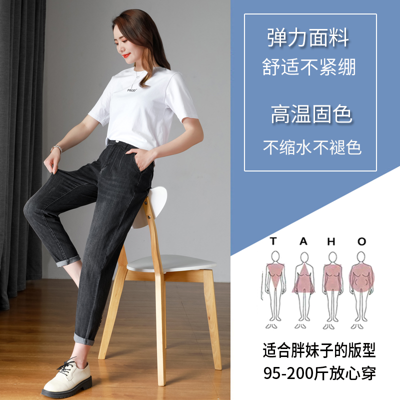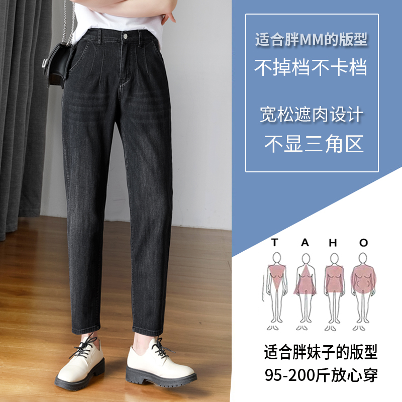 Осенние черные джинсы, штаны, большой размер, свободный крой, эластичная талия