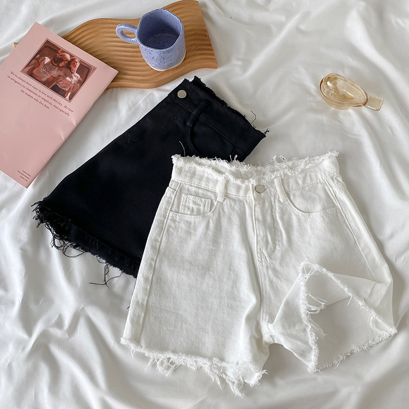 Белые цветные приталенные джинсовые шорты, летние штаны, А-силуэт, подходит для подростков, свободный крой