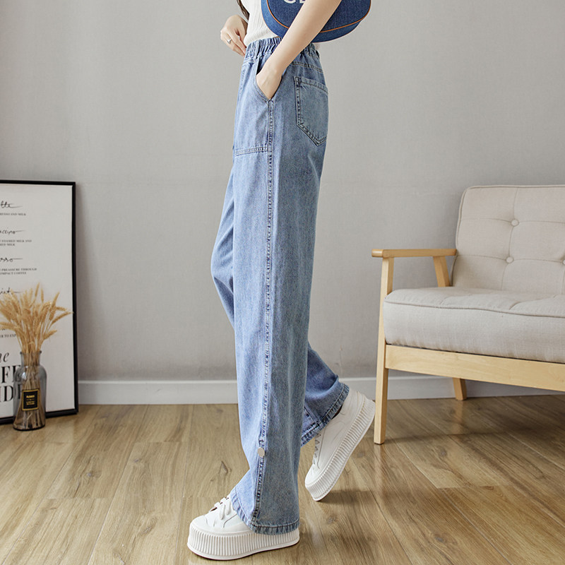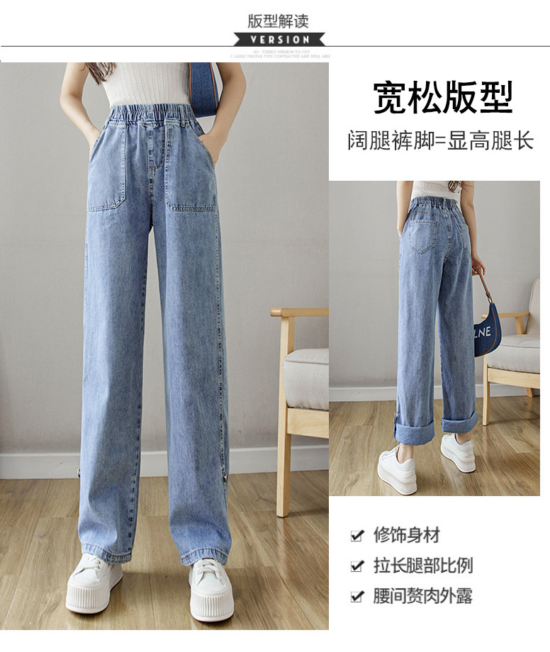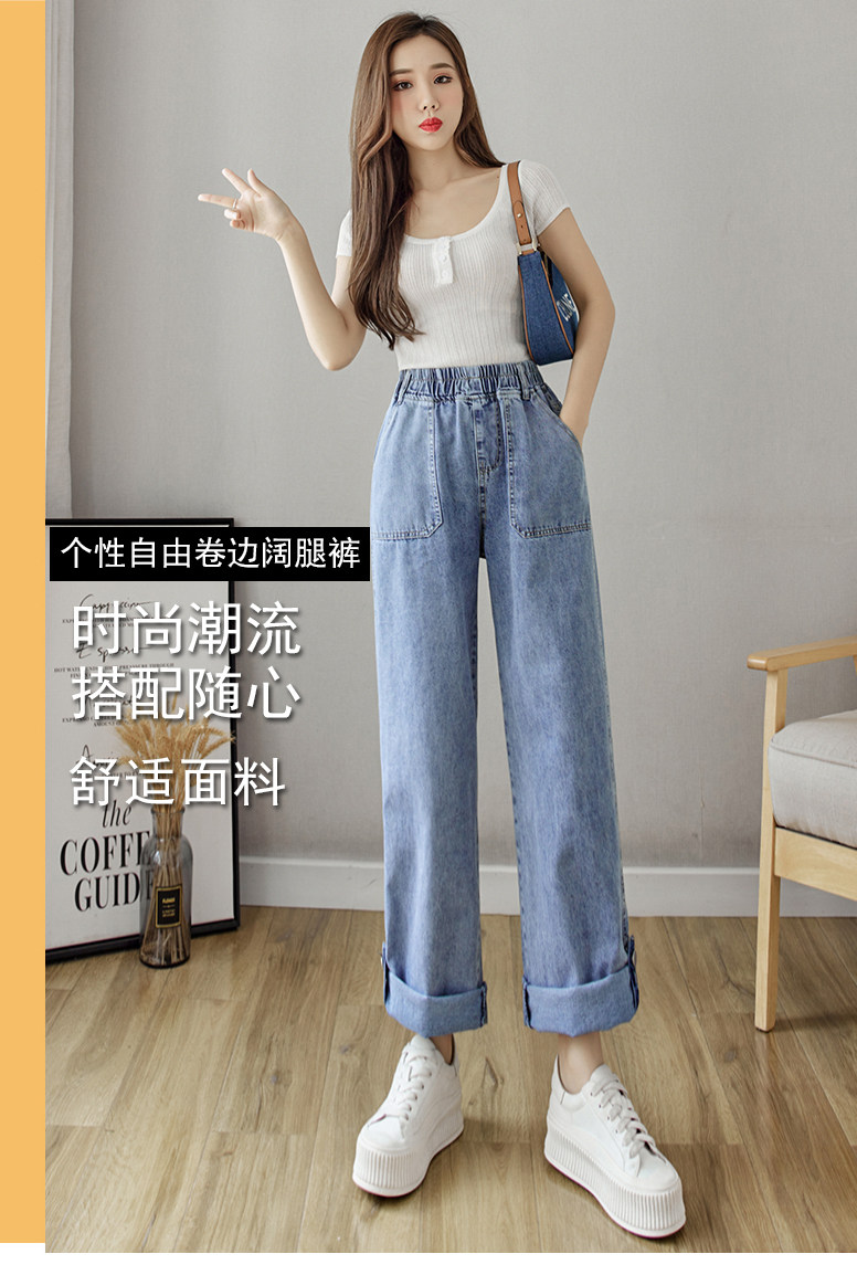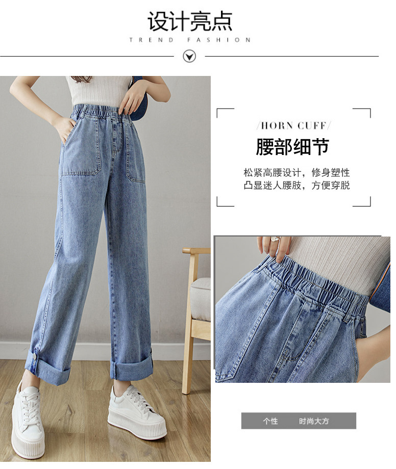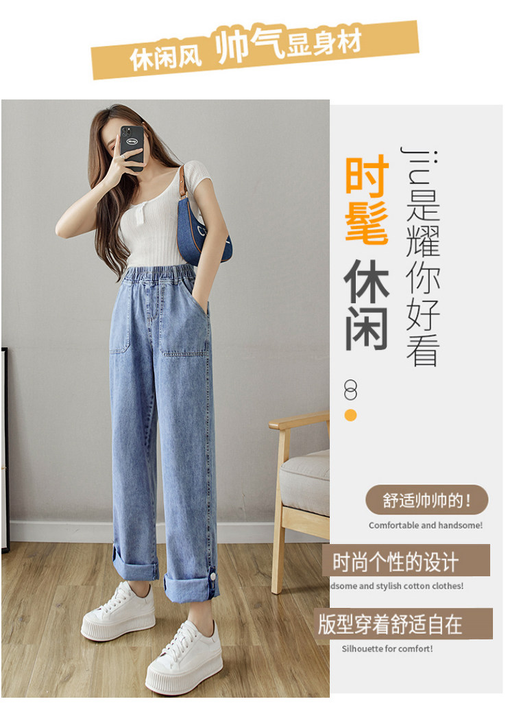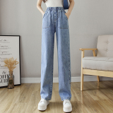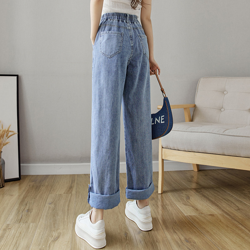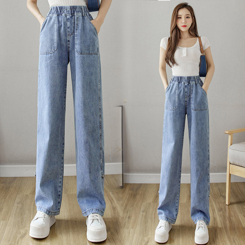 Весенние джинсы, осенние штаны, эластичная талия, высокая талия, свободный прямой крой