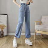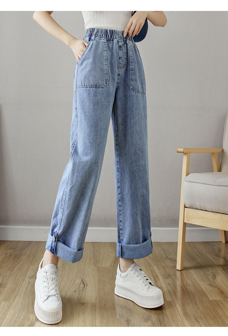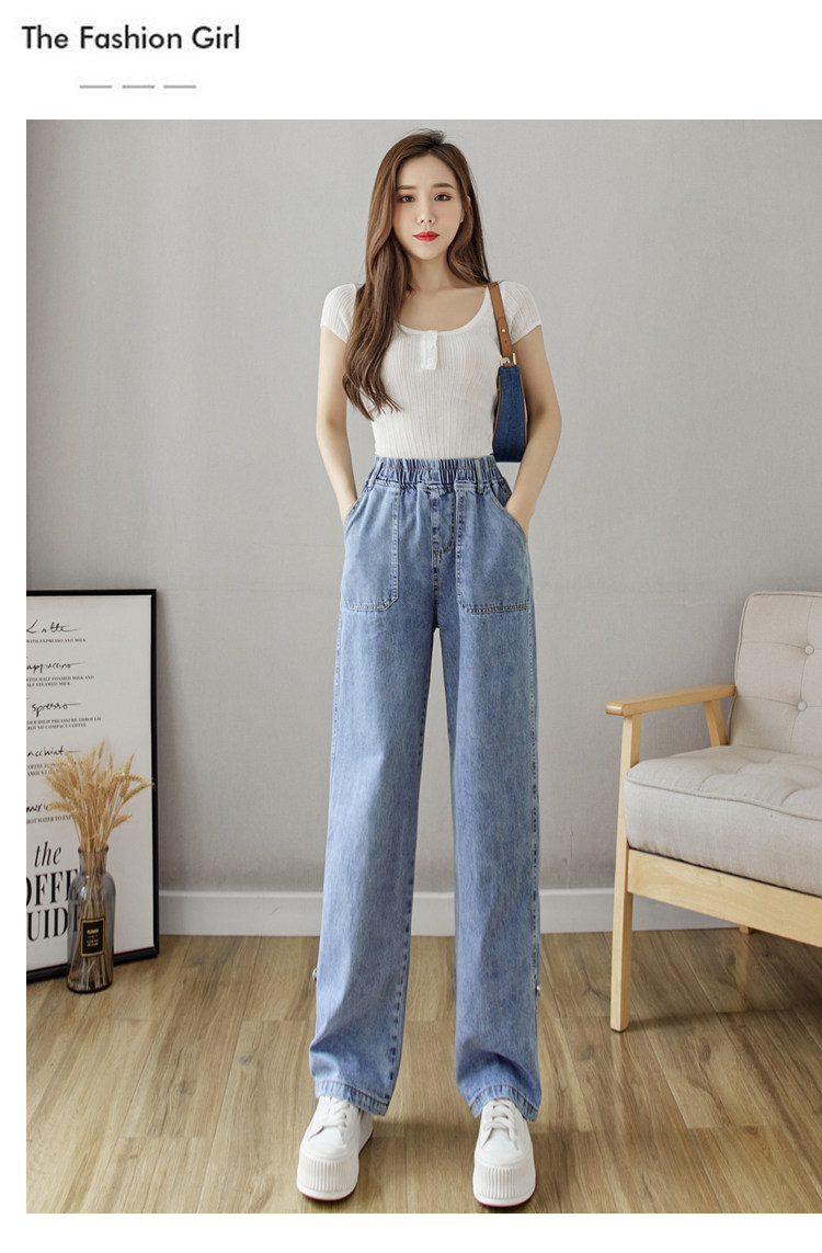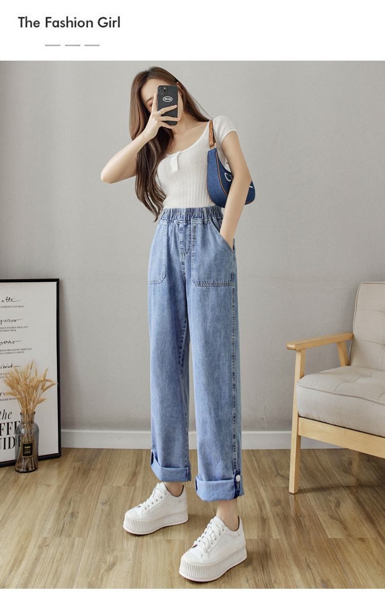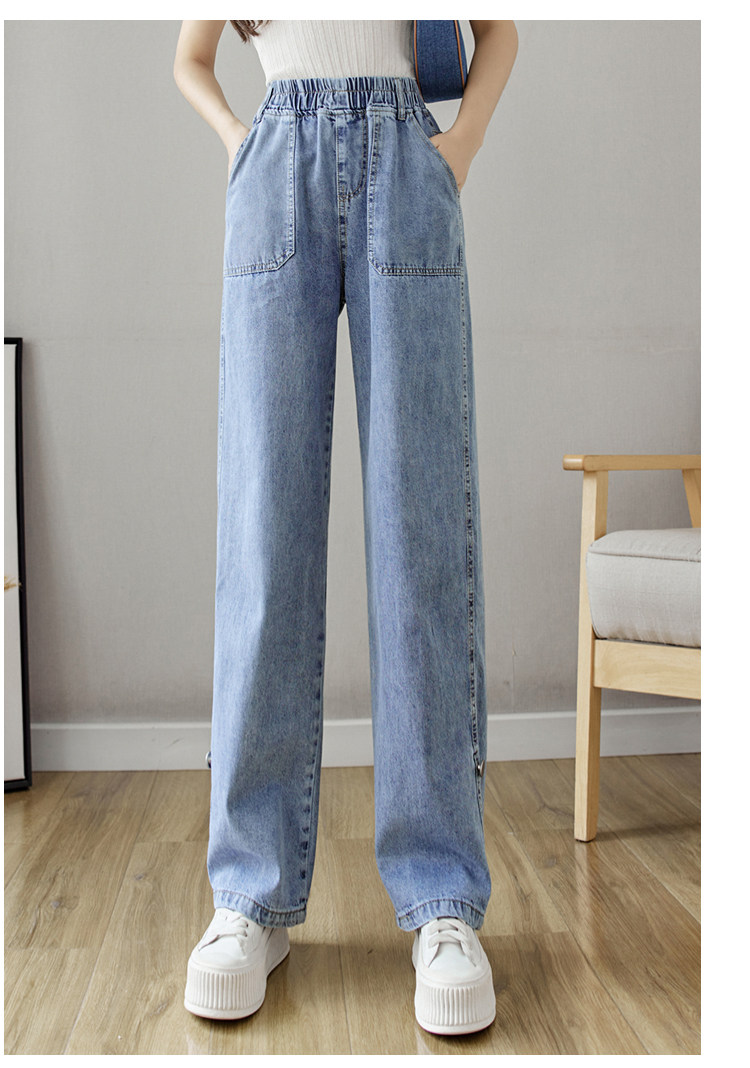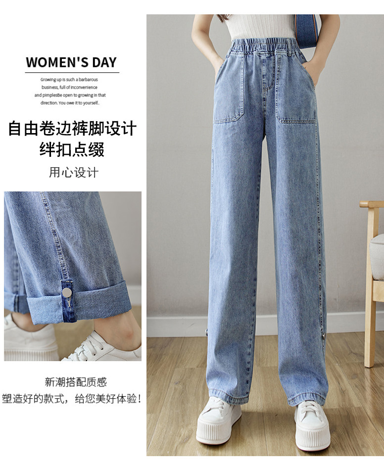 Весенние джинсы, осенние штаны, эластичная талия, высокая талия, свободный прямой крой
