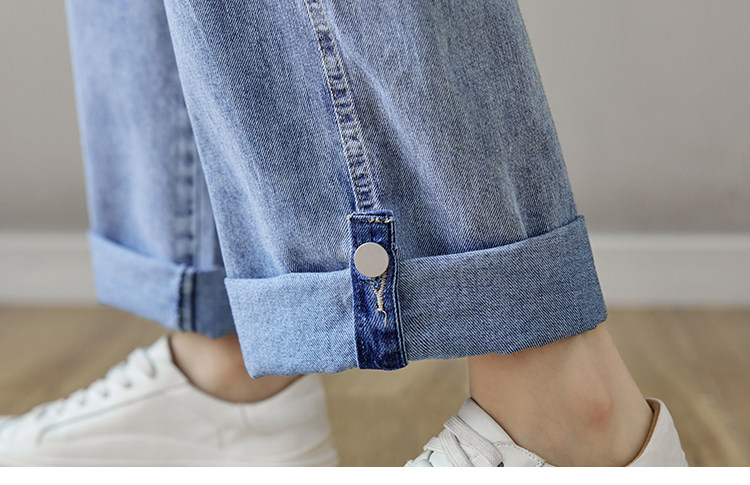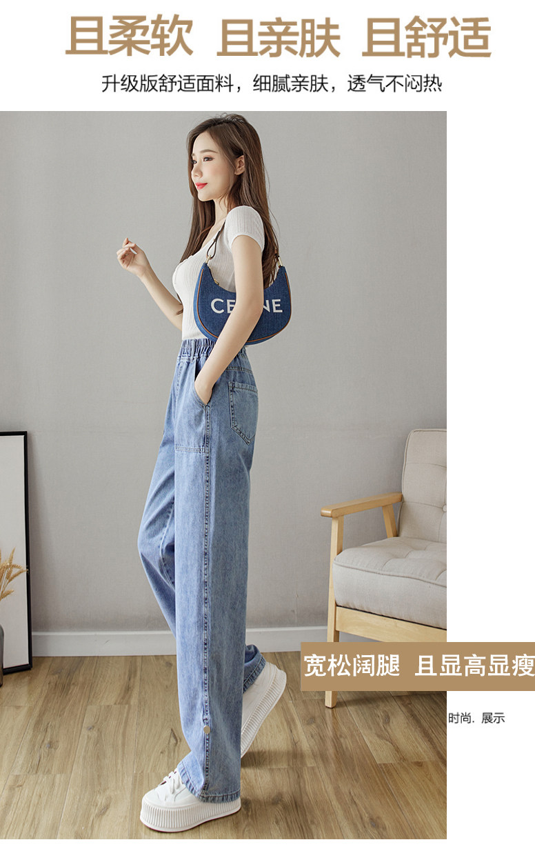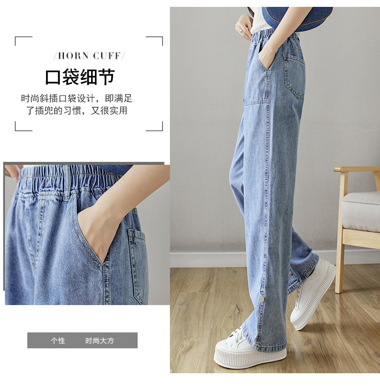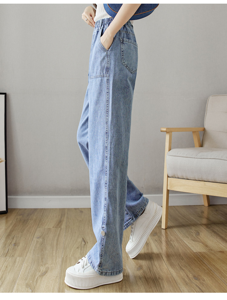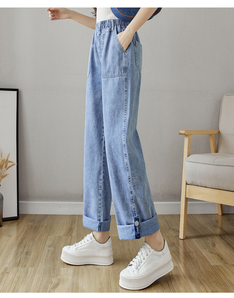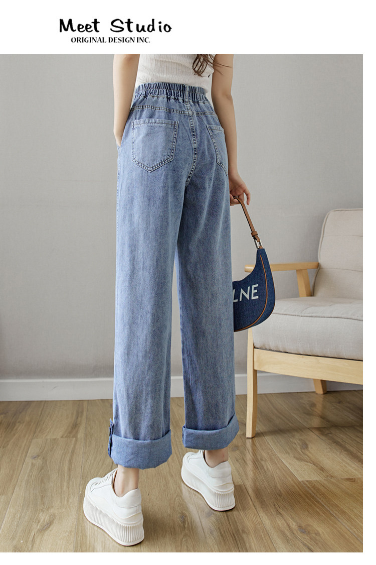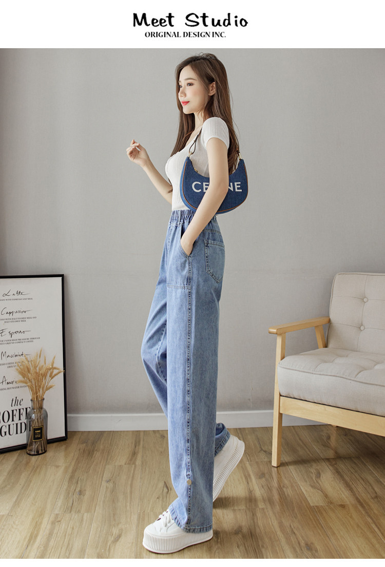 Весенние джинсы, осенние штаны, эластичная талия, высокая талия, свободный прямой крой