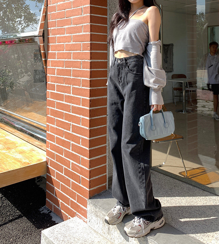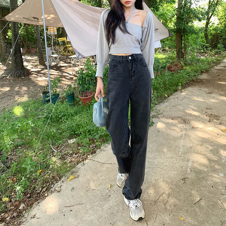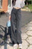 Летние прямые свободные джинсы, приталенные брендовые штаны, свободный прямой крой, высокая талия