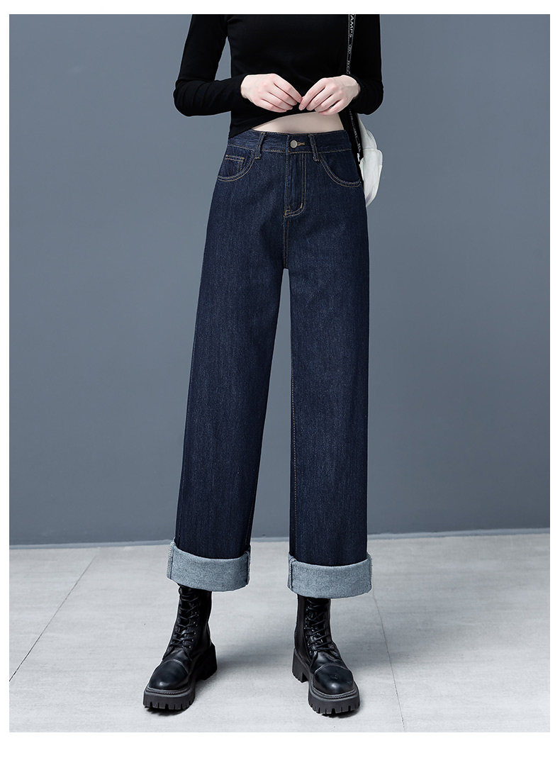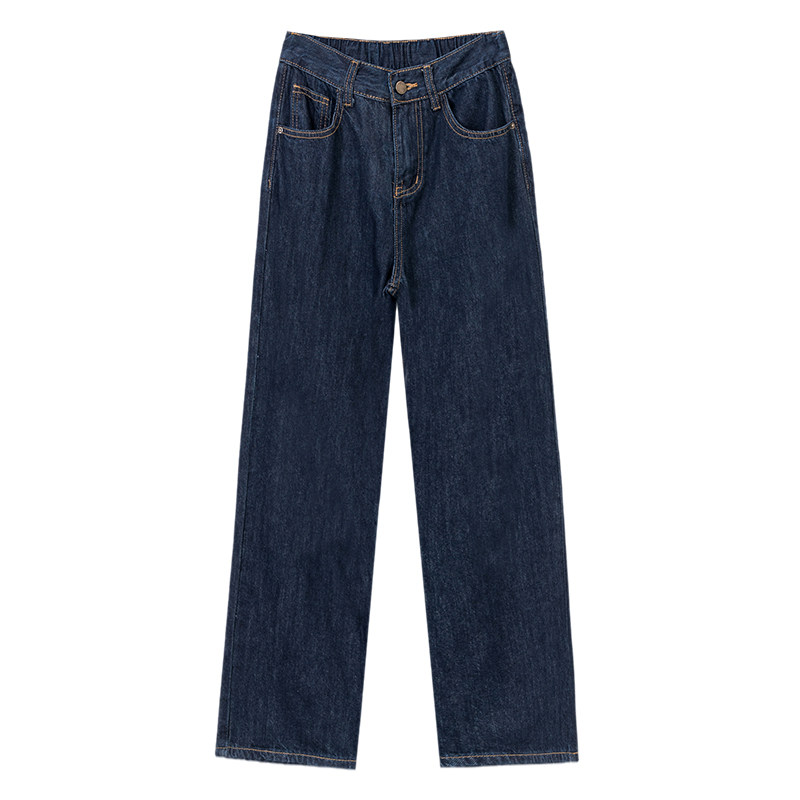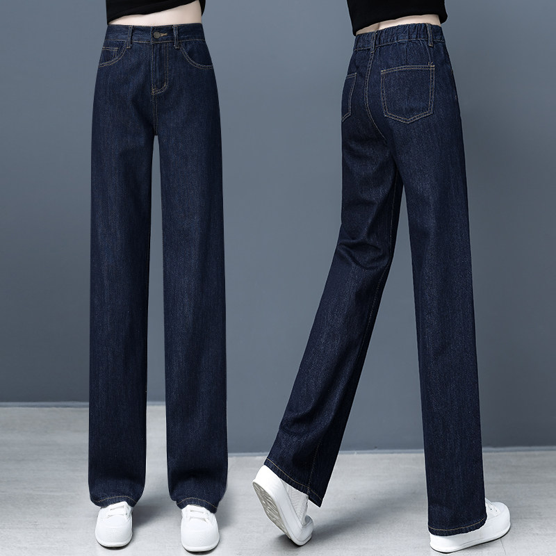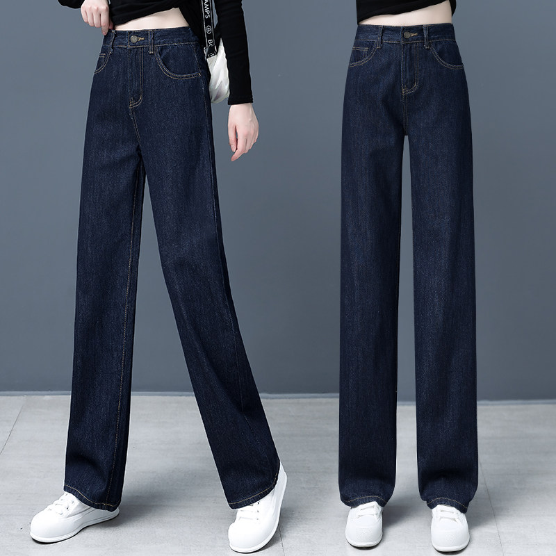 Весенние джинсы, осенние темно-синие штаны, высокая талия, 2025 года, свободный прямой крой, облегающий крой