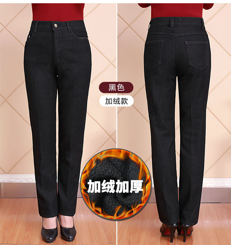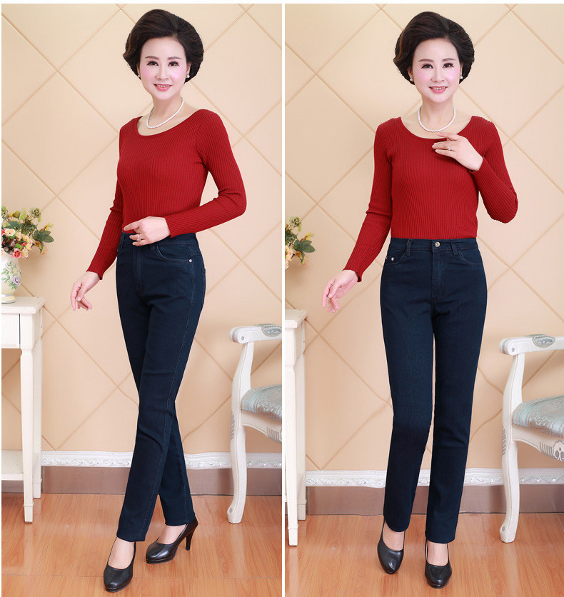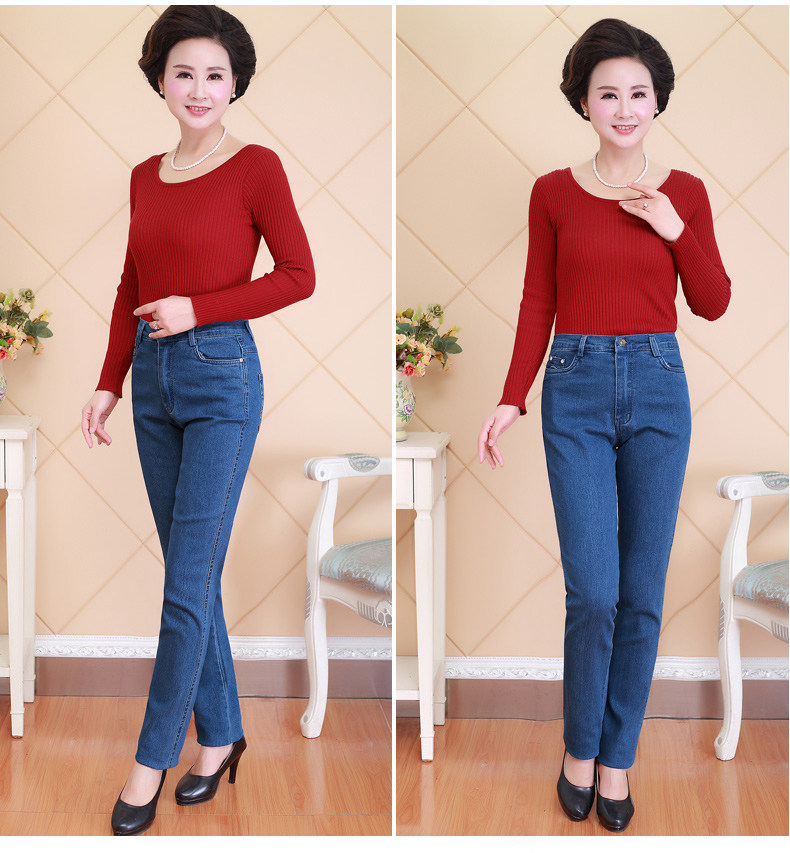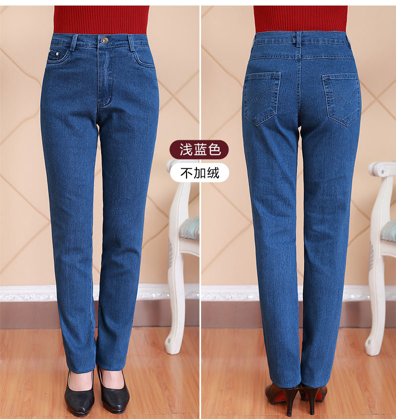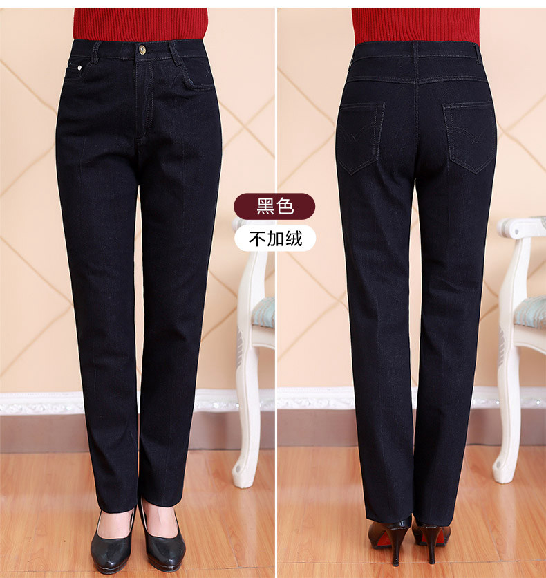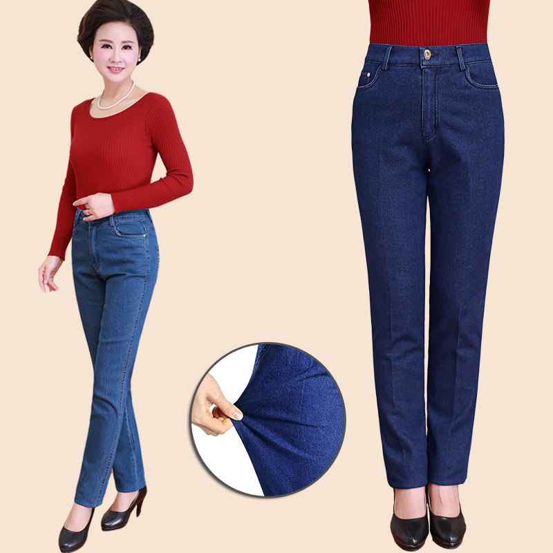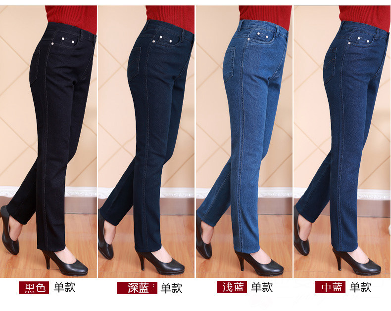 Весенние джинсы, эластичные штаны, для среднего возраста, большой размер, свободный прямой крой