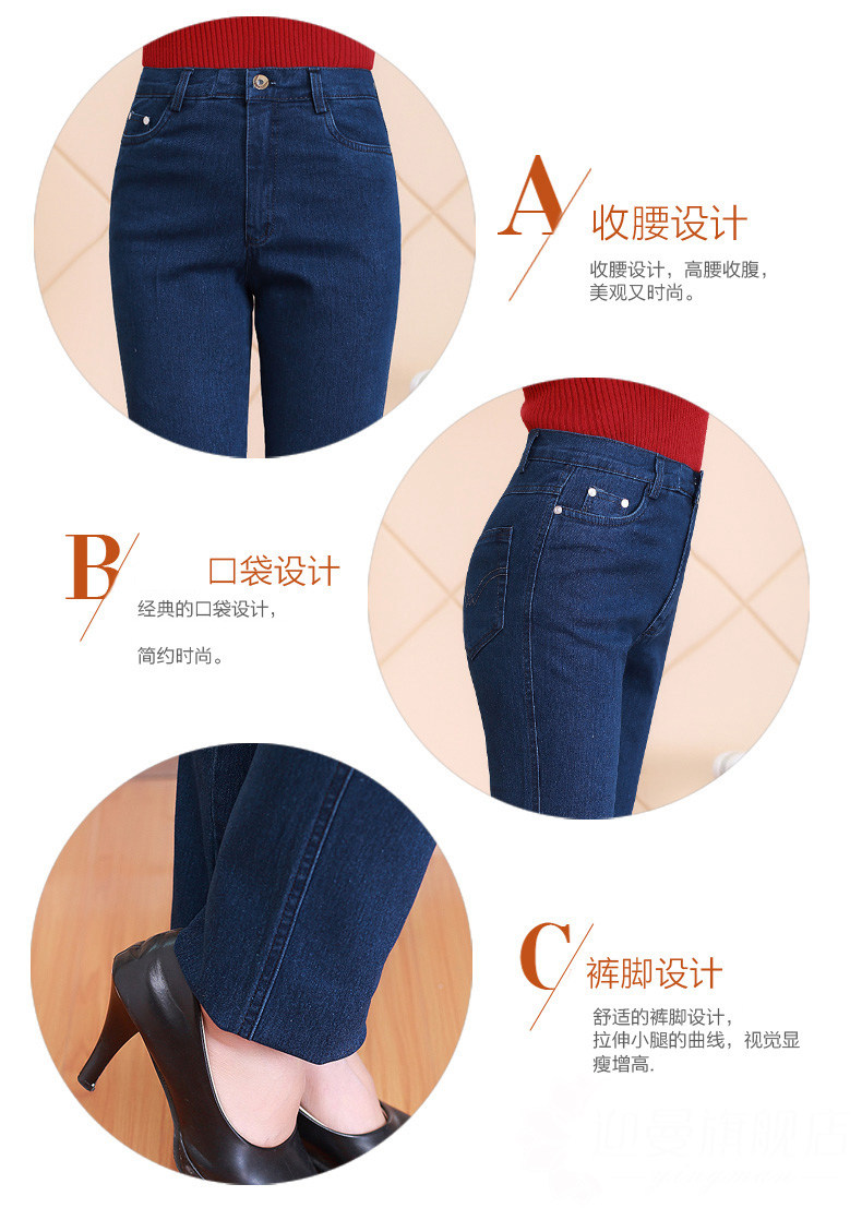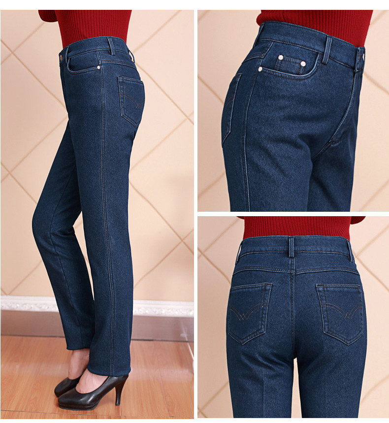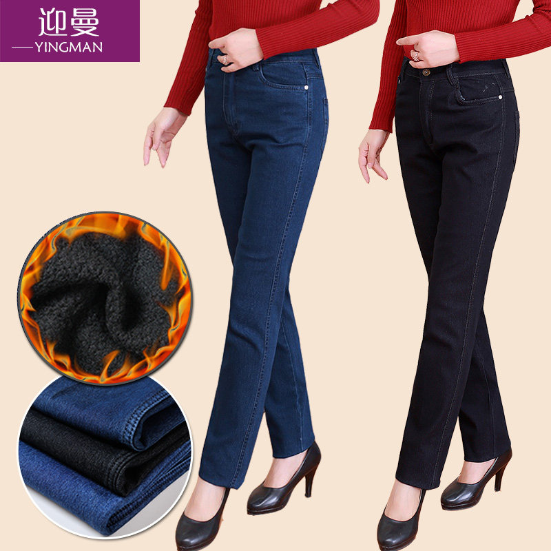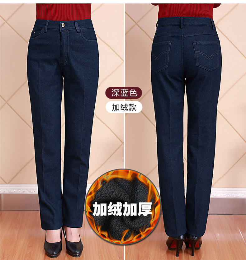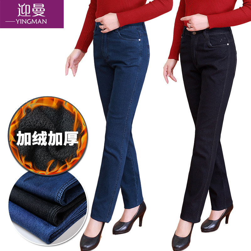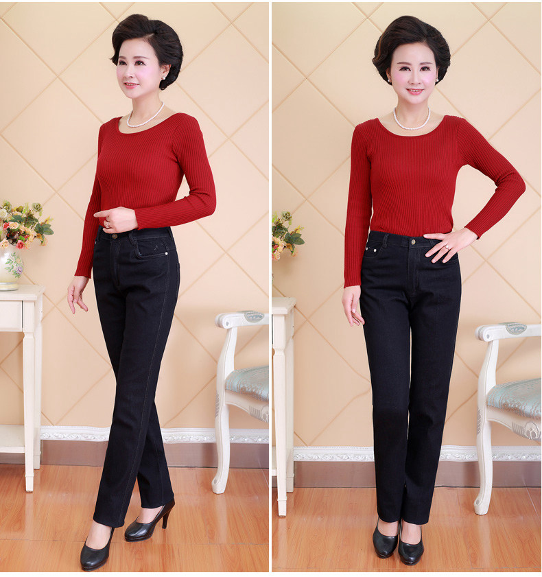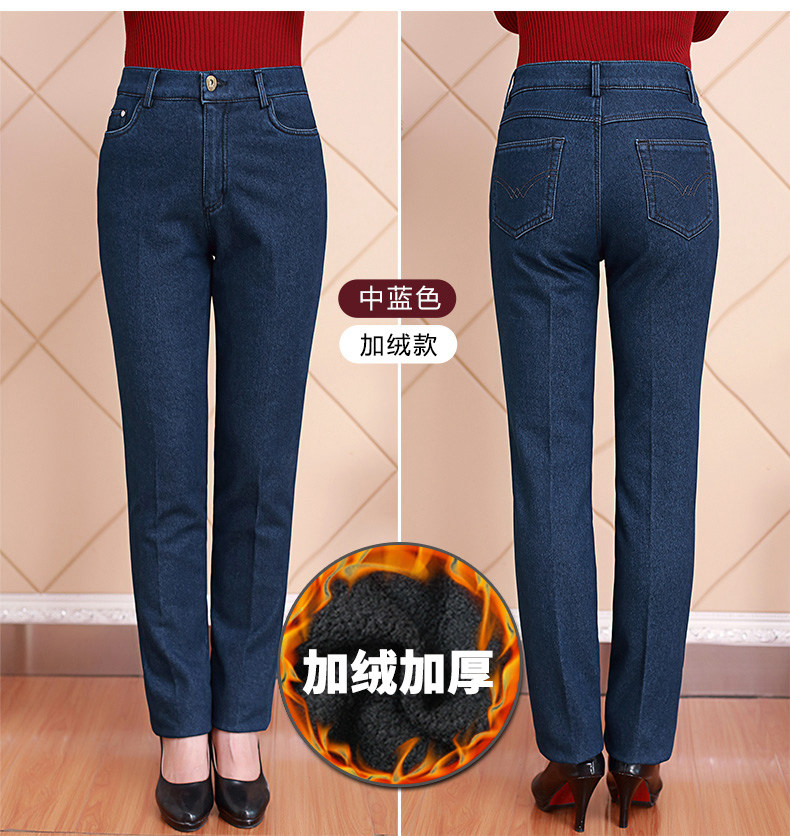Весенние джинсы, эластичные штаны, для среднего возраста, большой размер, свободный прямой крой