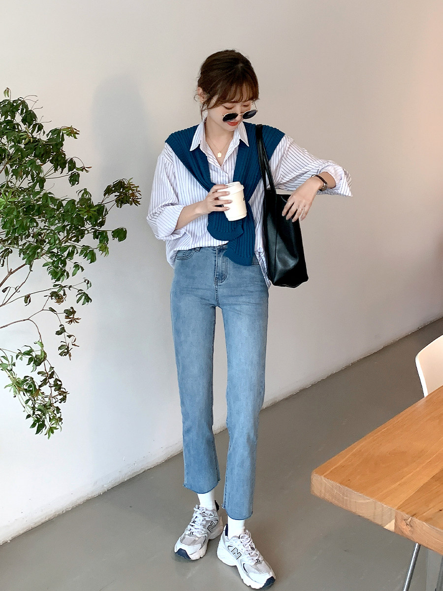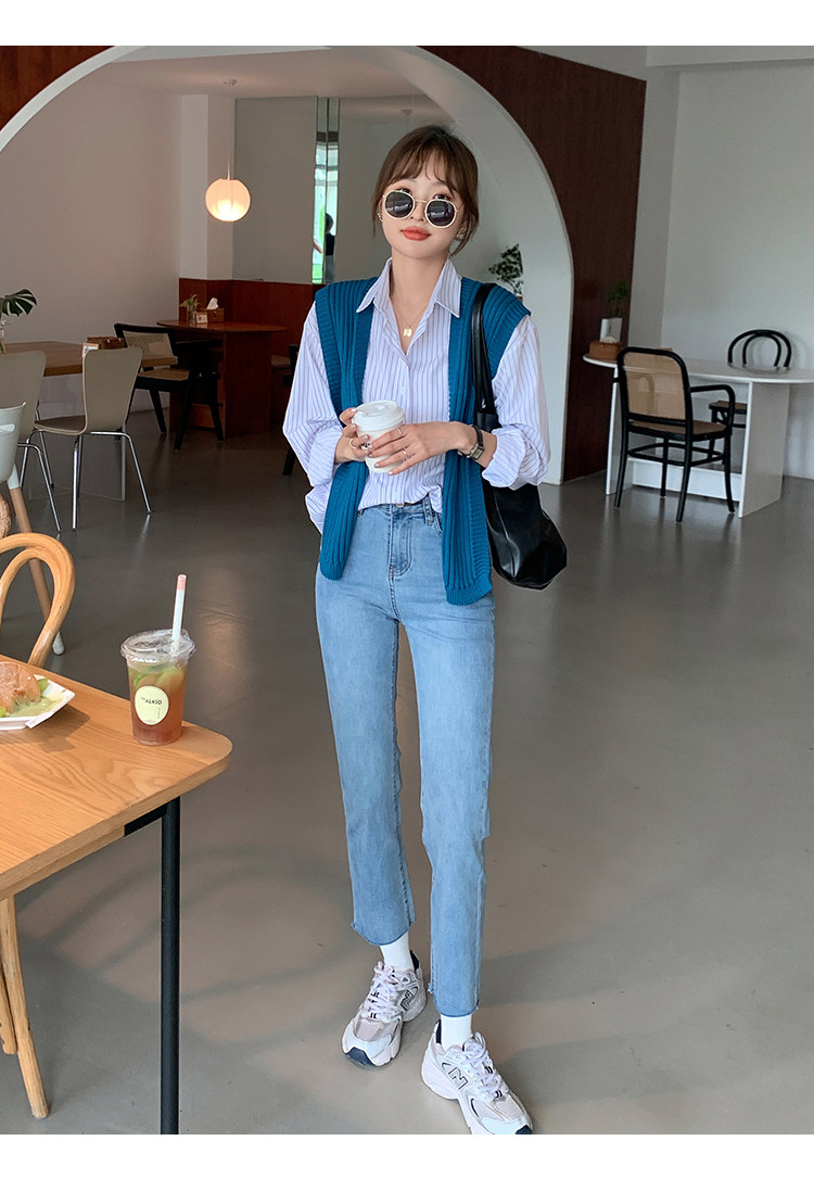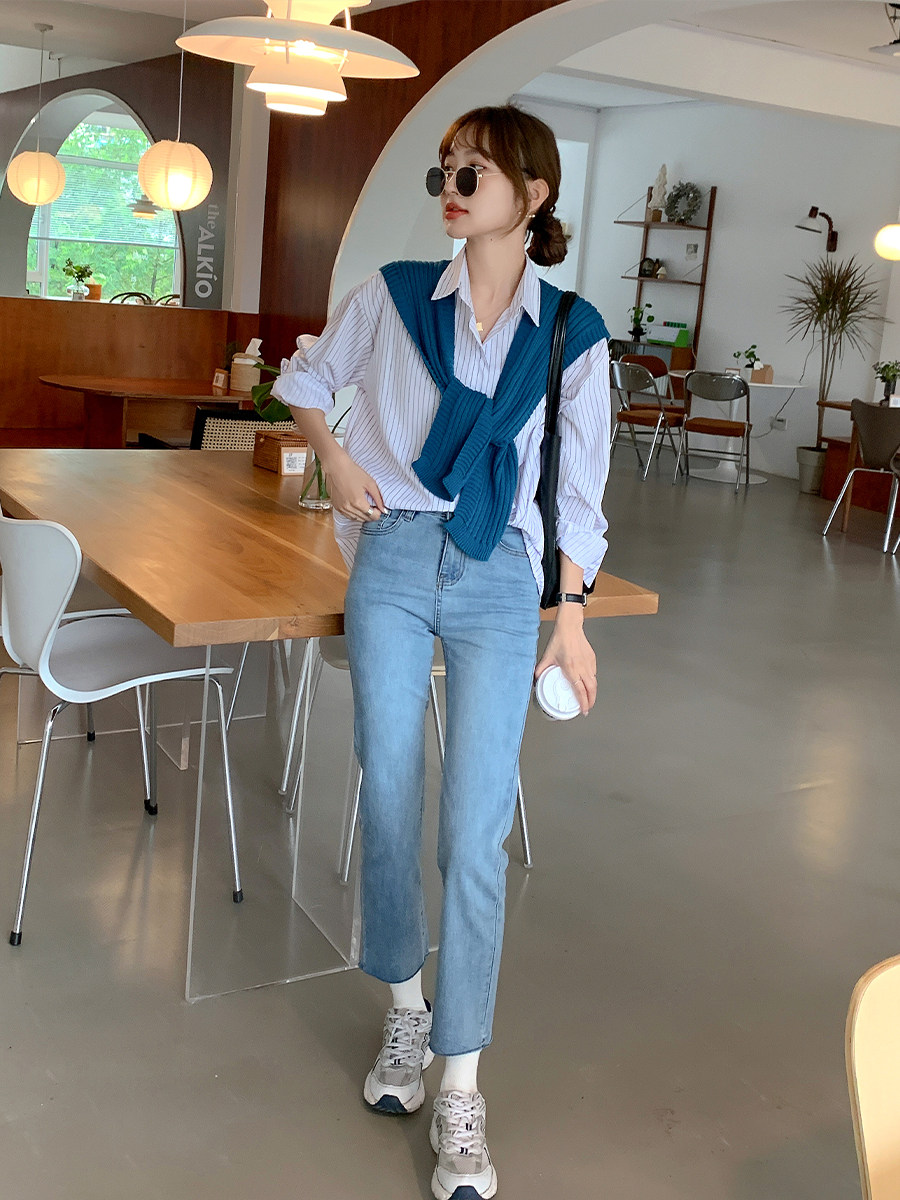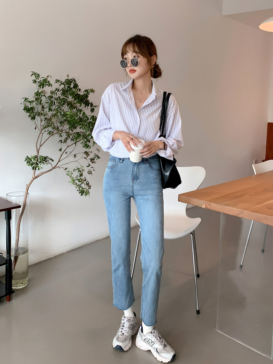 Летние синие штаны, высокая талия, свободный прямой крой, облегающий крой, подходит для подростков