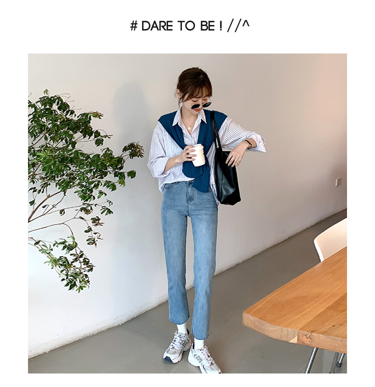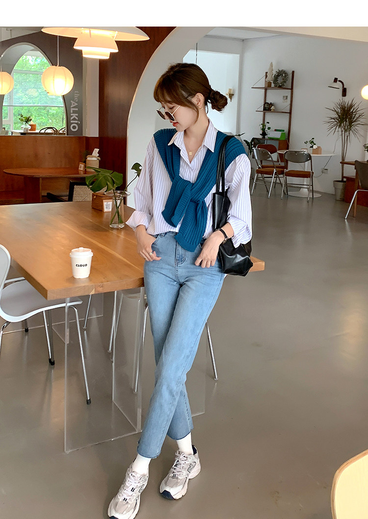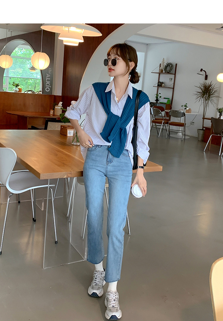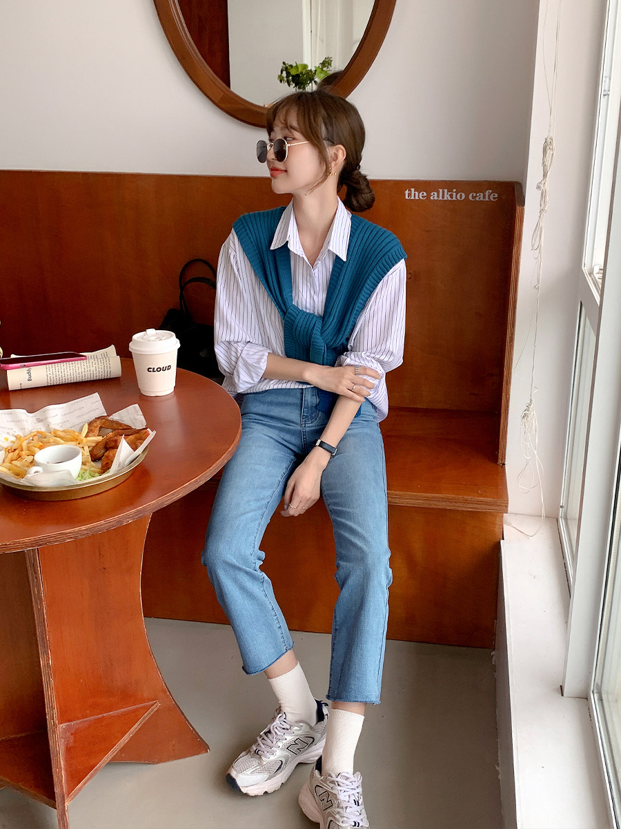 Летние синие штаны, высокая талия, свободный прямой крой, облегающий крой, подходит для подростков