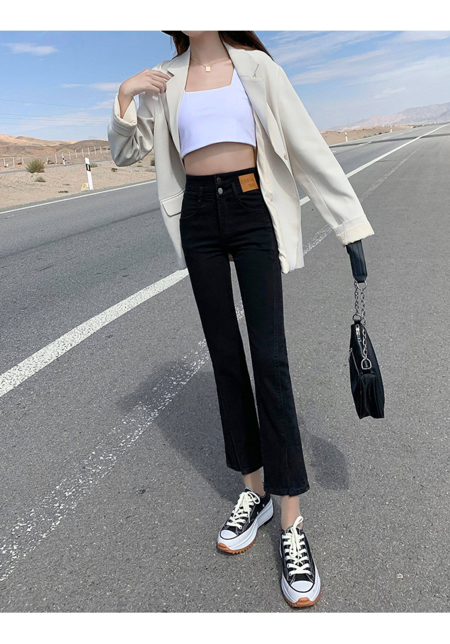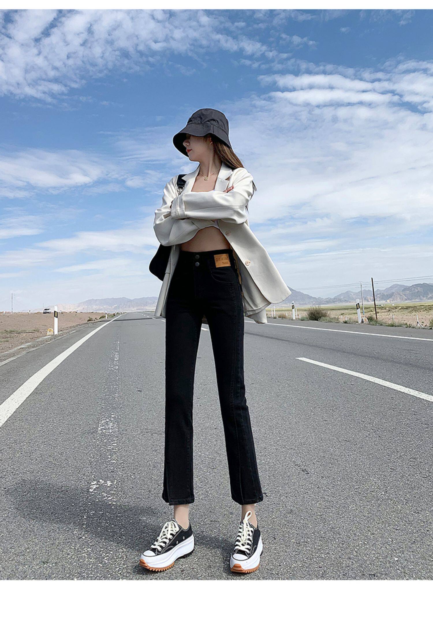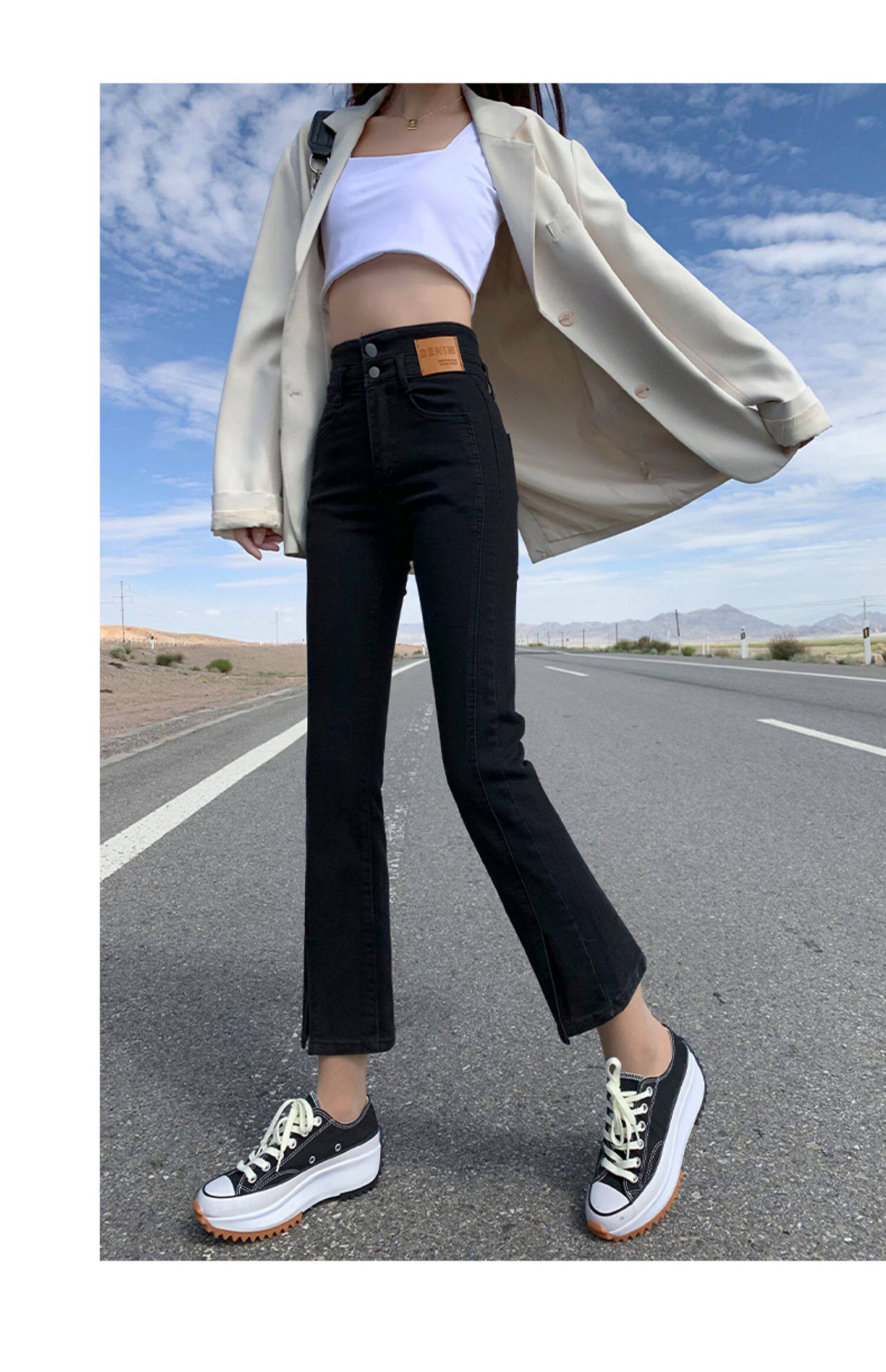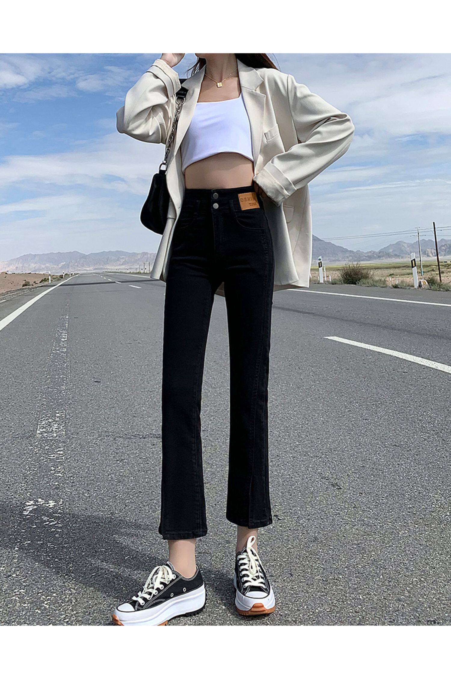 Черные цветные приталенные прямые свободные джинсы, эластичные весенние универсальные штаны, зимняя трубка, новая коллекция, по фигуре