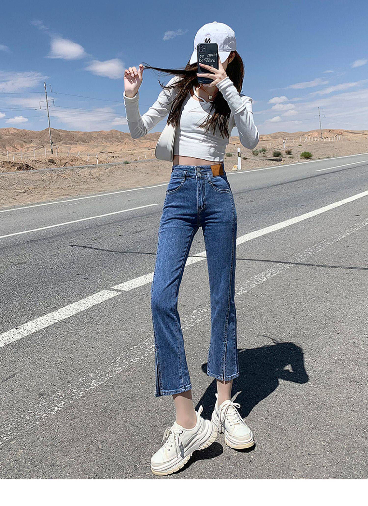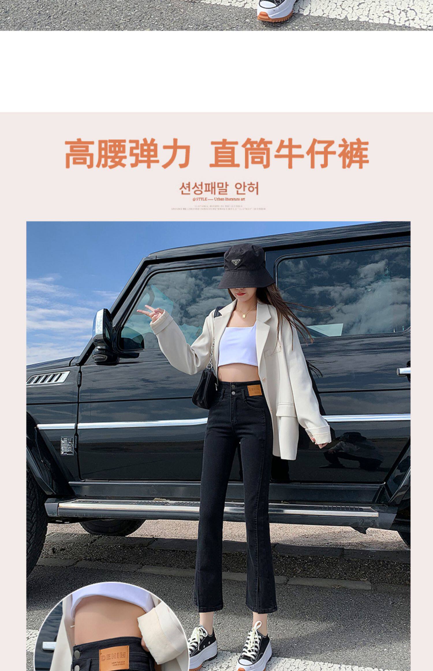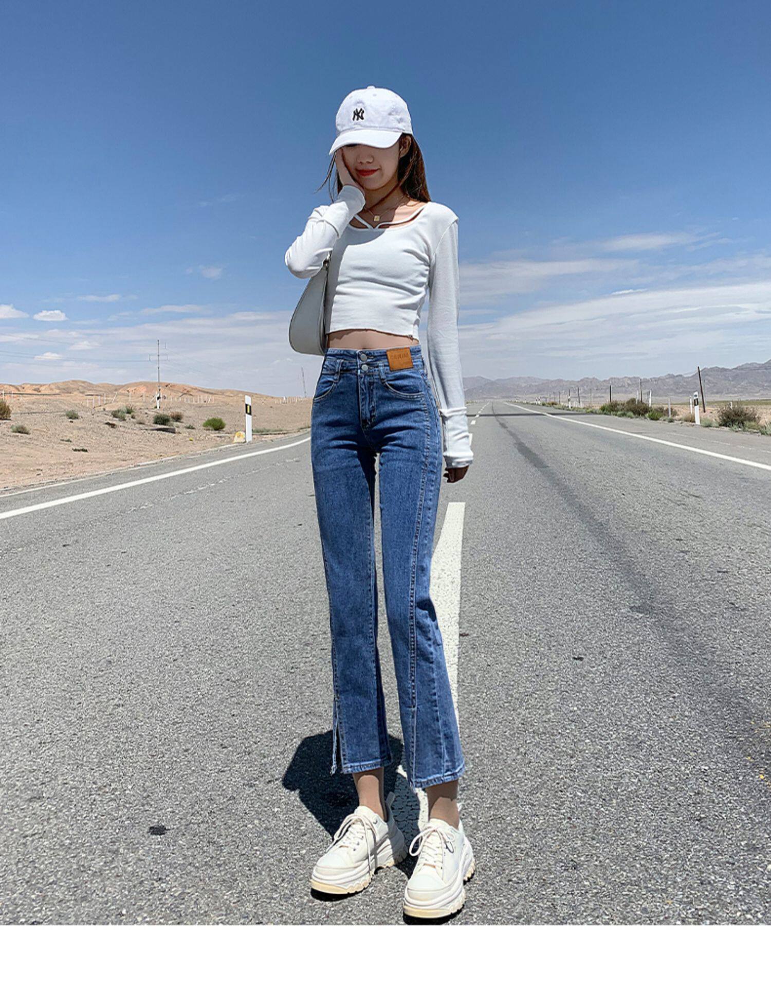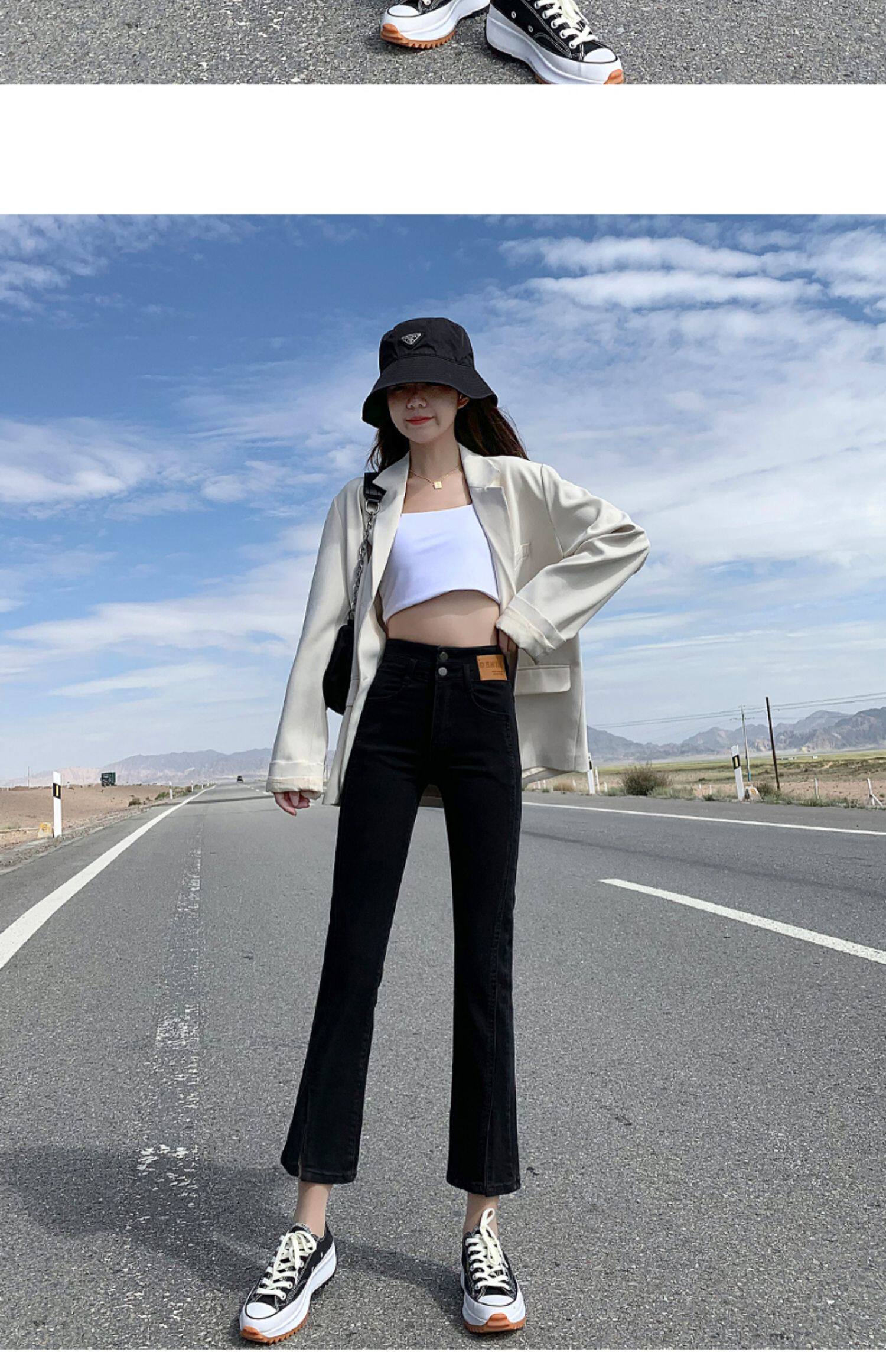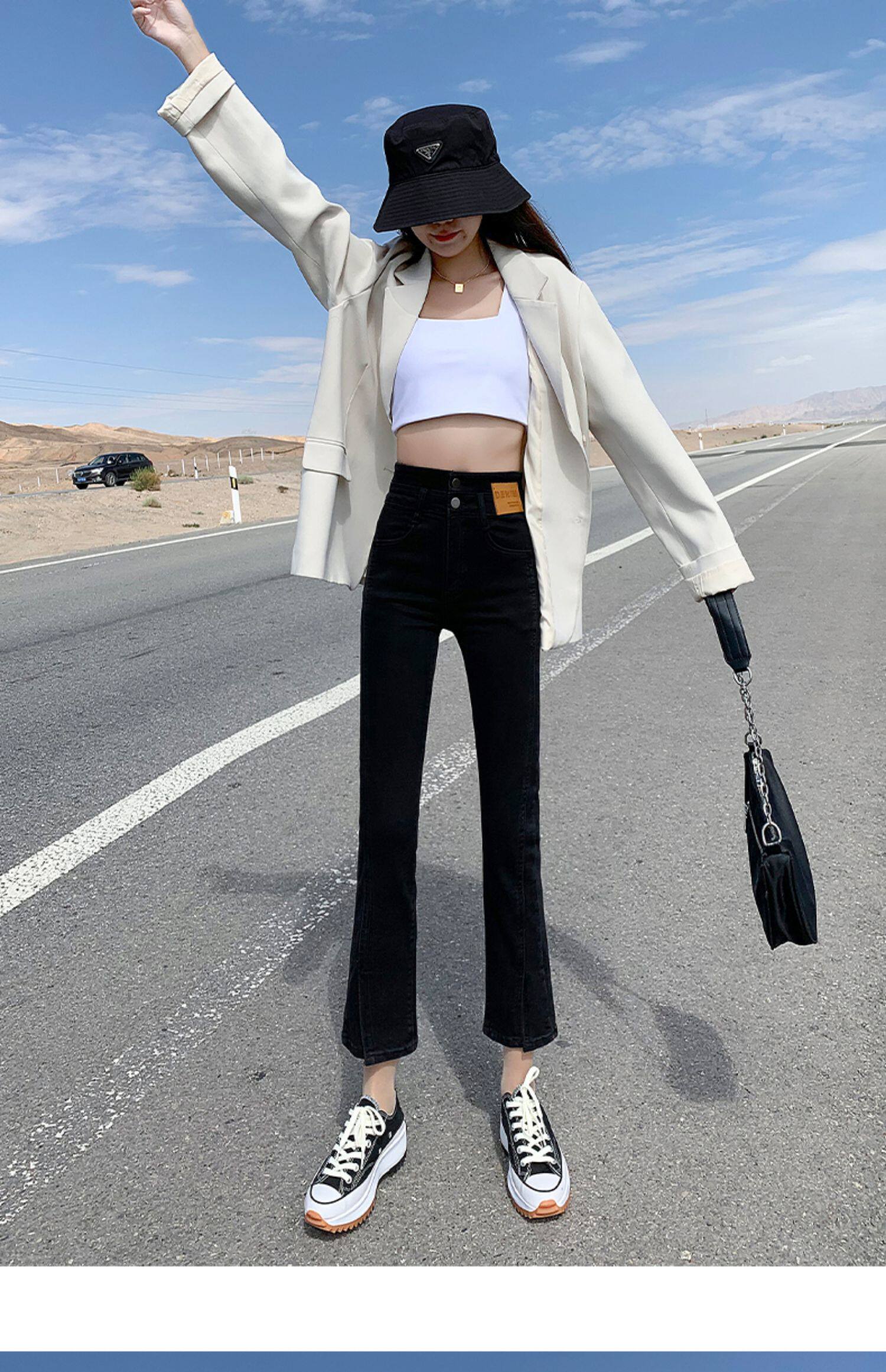 Черные цветные приталенные прямые свободные джинсы, эластичные весенние универсальные штаны, зимняя трубка, новая коллекция, по фигуре