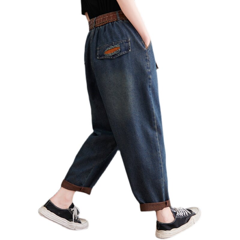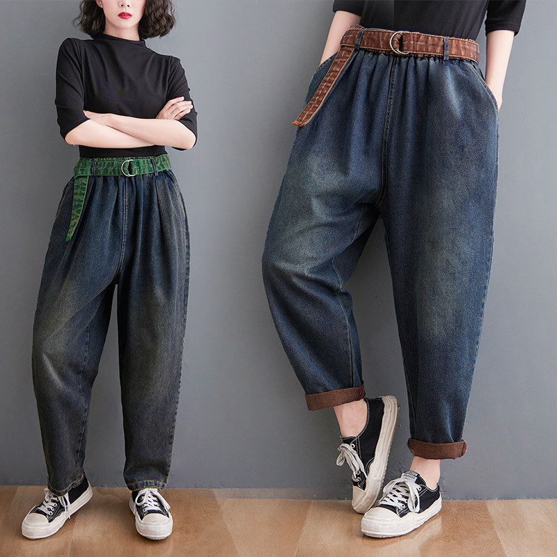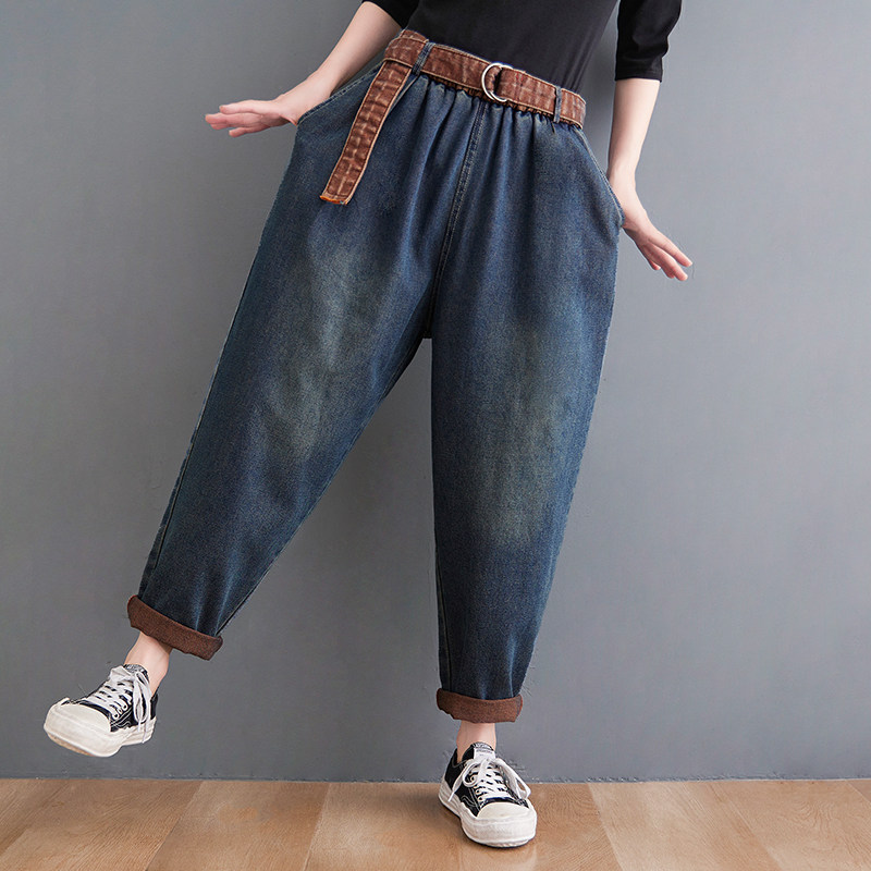 Штаны, джинсы, большой размер, коллекция 2021, подходит для полных девушек, высокая талия