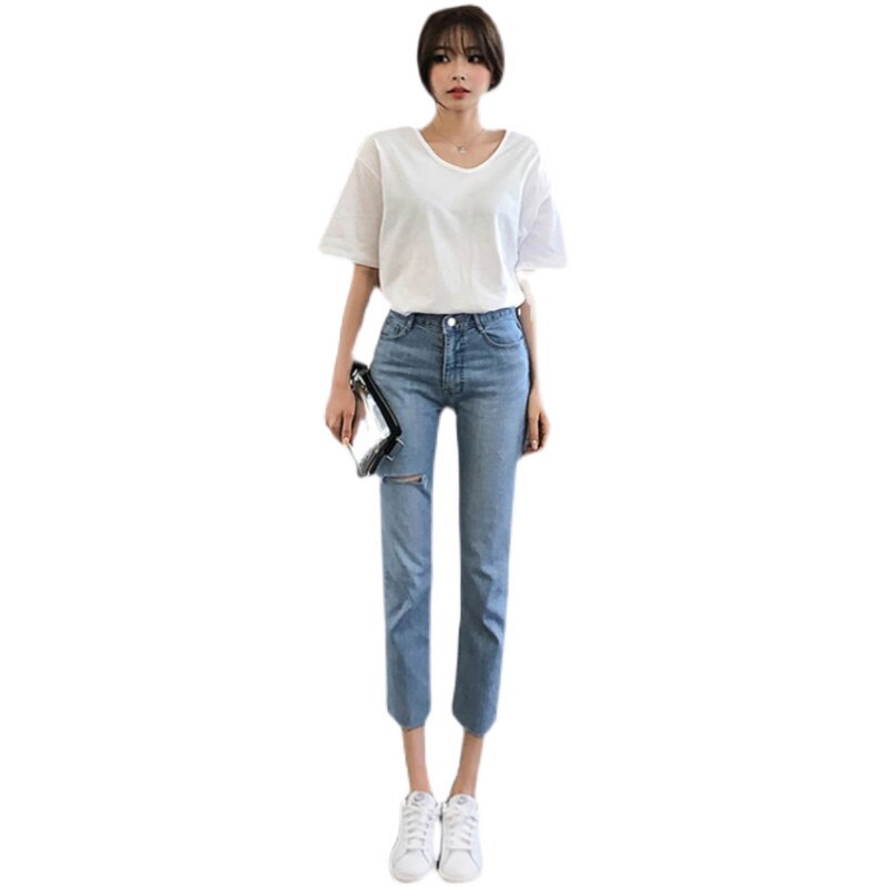 - Голубые брюки отверстия
