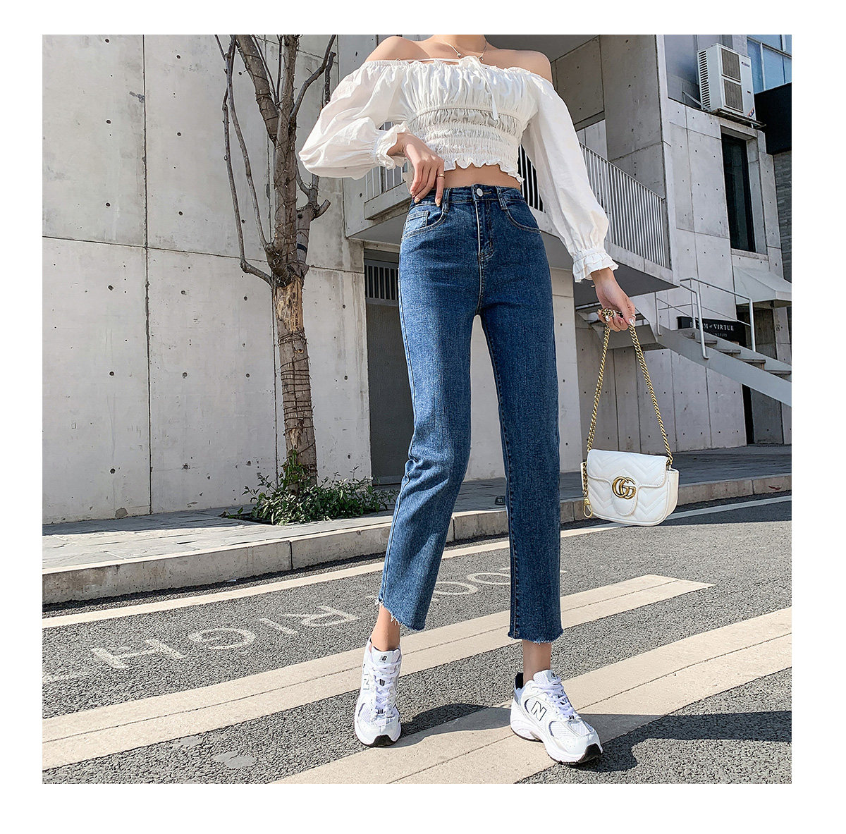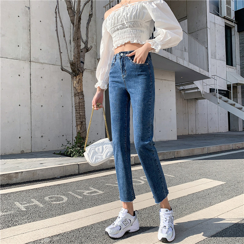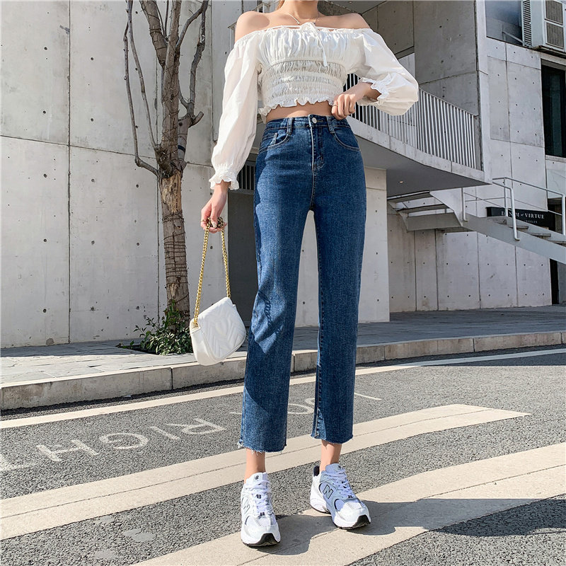 Синие прямые свободные джинсы, брендовые штаны, высокая талия, коллекция 2023, подходит для подростков, по фигуре, свободный крой