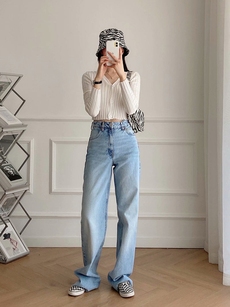 Kaslead Новая женская одежда в европейской и американском стиле с высокой талией Стройные повседневные джинсы с широкими ногами 06045224400