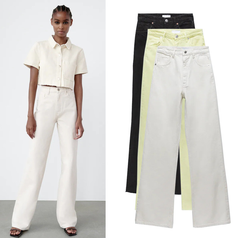 Осенние модные джинсы, штаны, в корейском стиле, высокая талия, свободный прямой крой