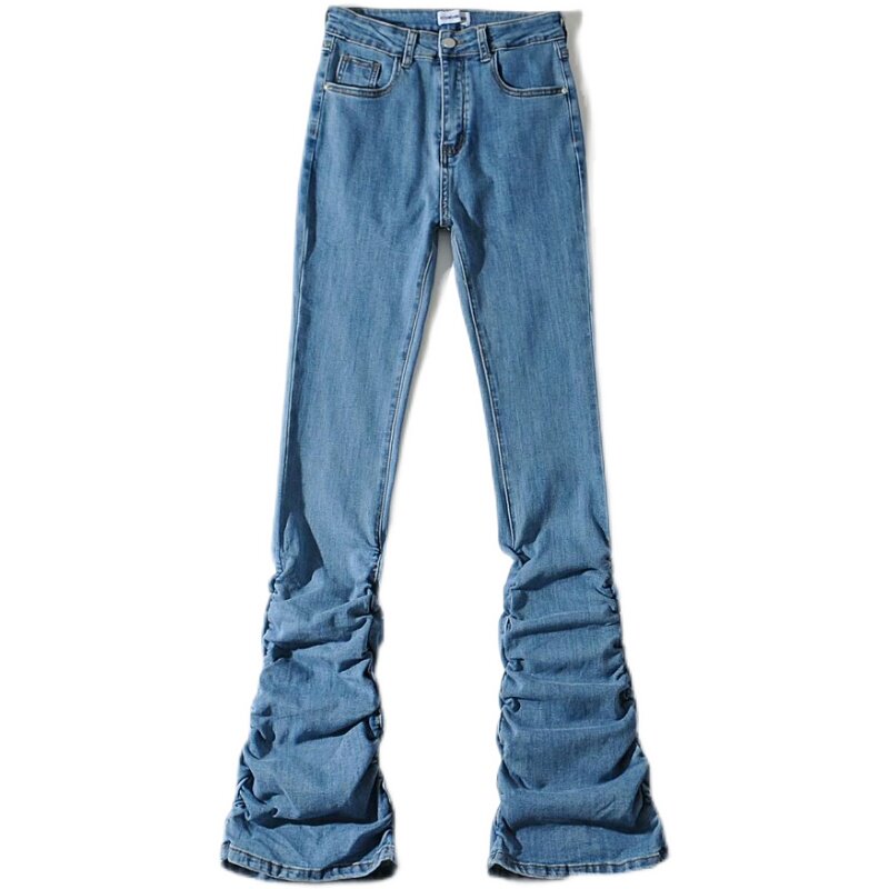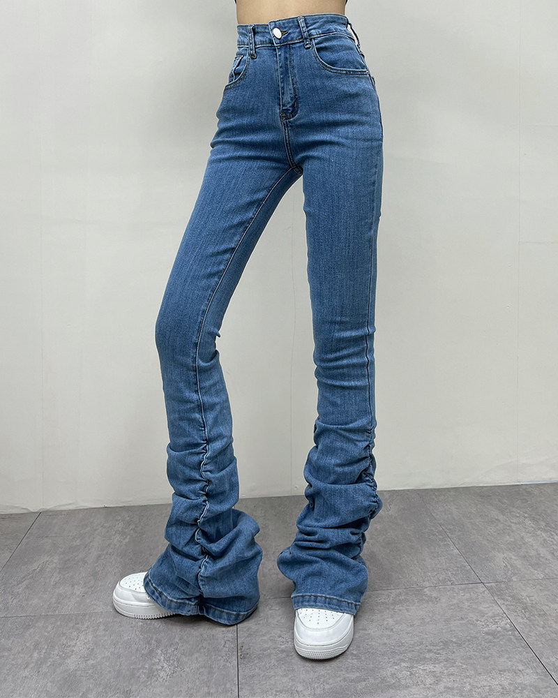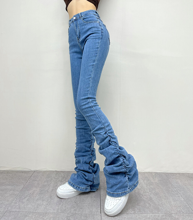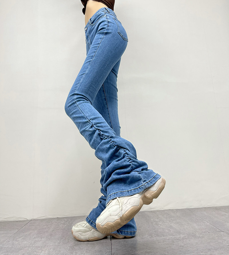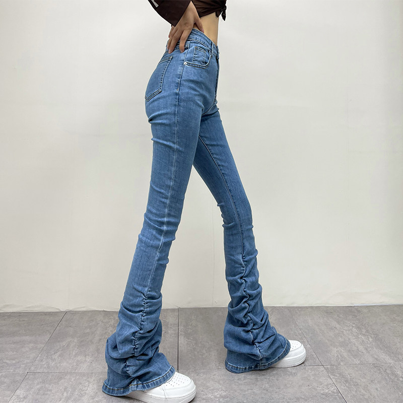 Штаны, мегафон, джинсовые джинсы, европейский стиль, по фигуре, осенние, высокая талия