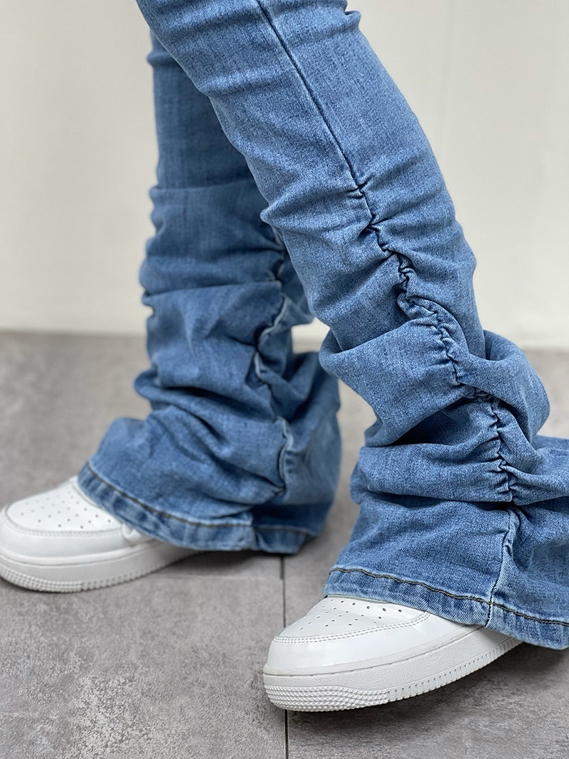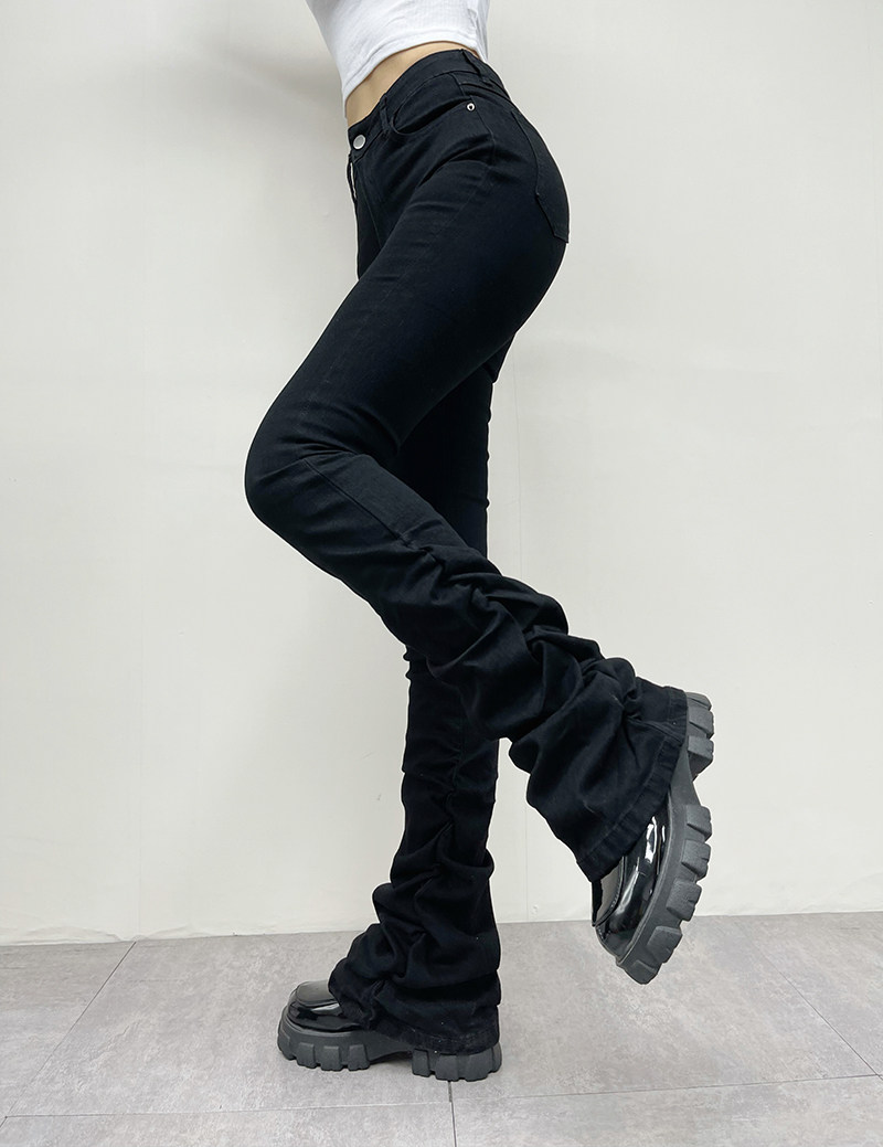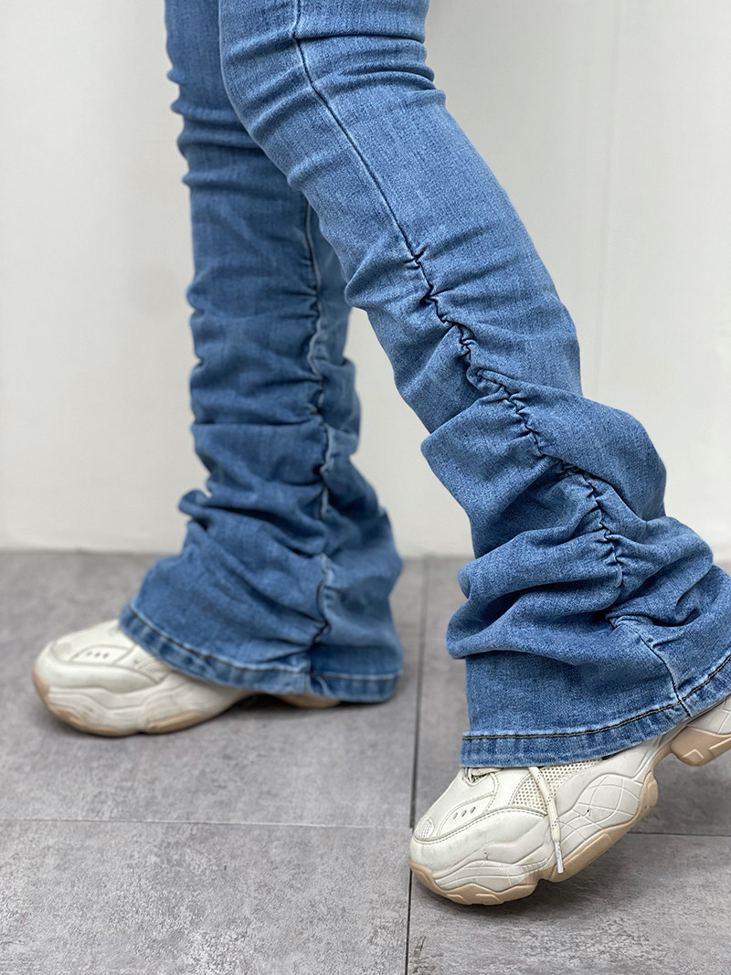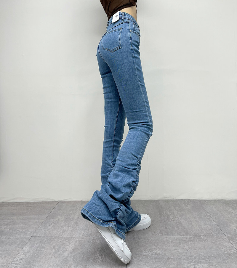 Штаны, мегафон, джинсовые джинсы, европейский стиль, по фигуре, осенние, высокая талия