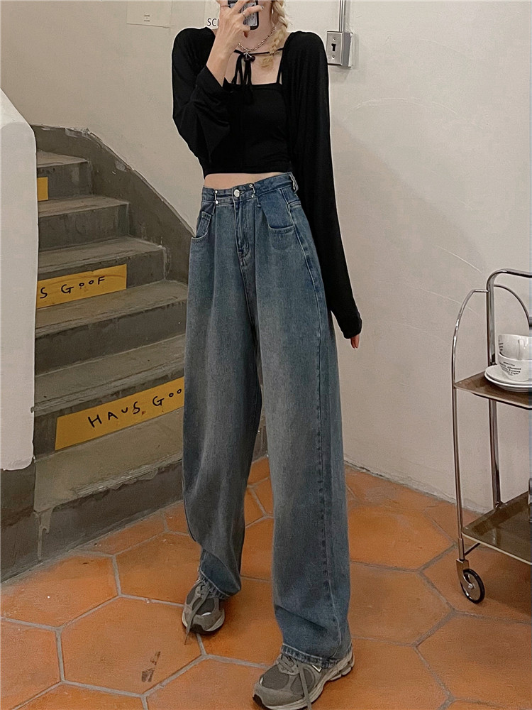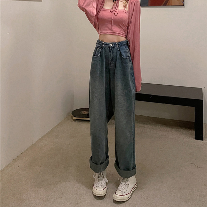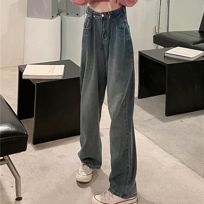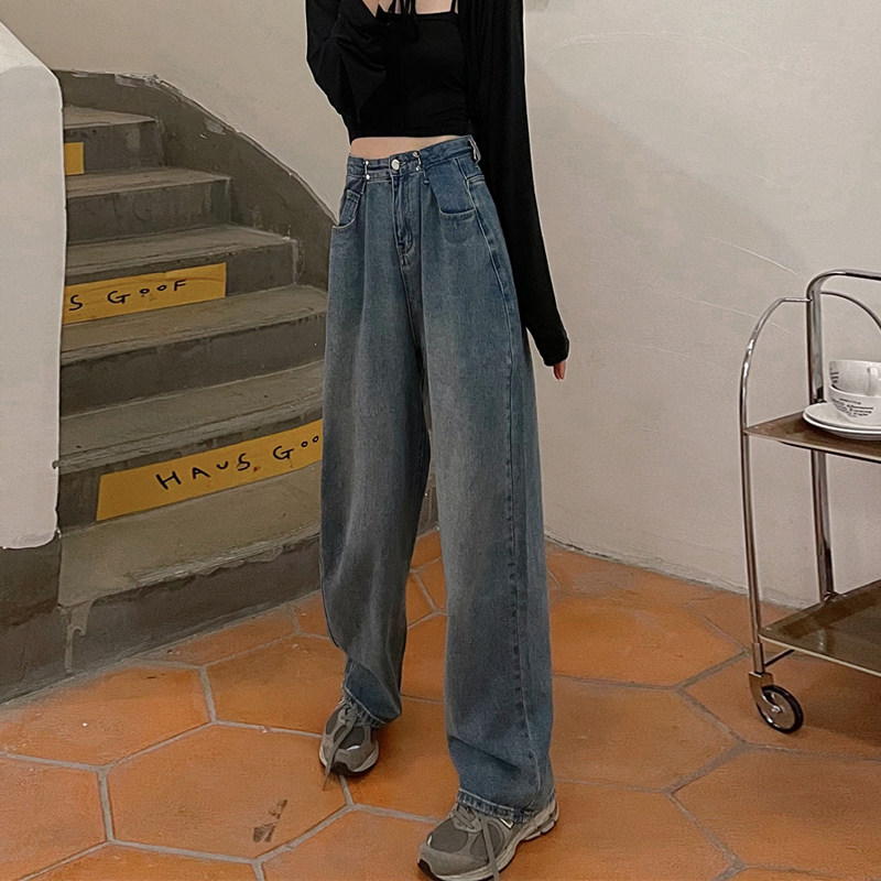 Осенние джинсы, приталенные штаны, 2025 года, большой размер, высокая талия, свободный прямой крой