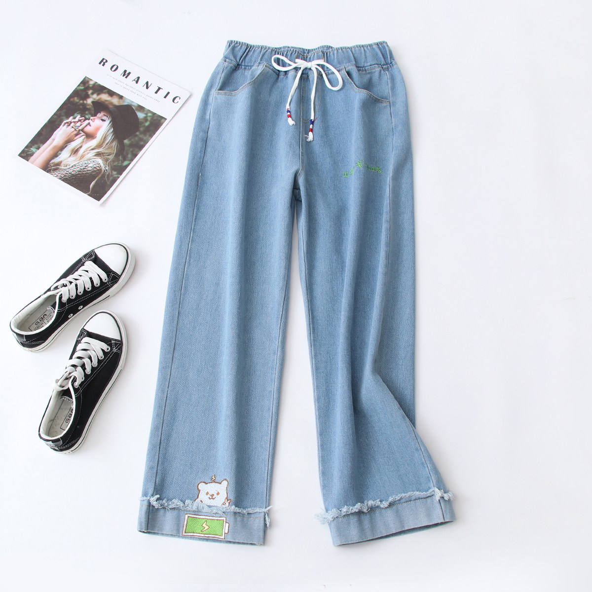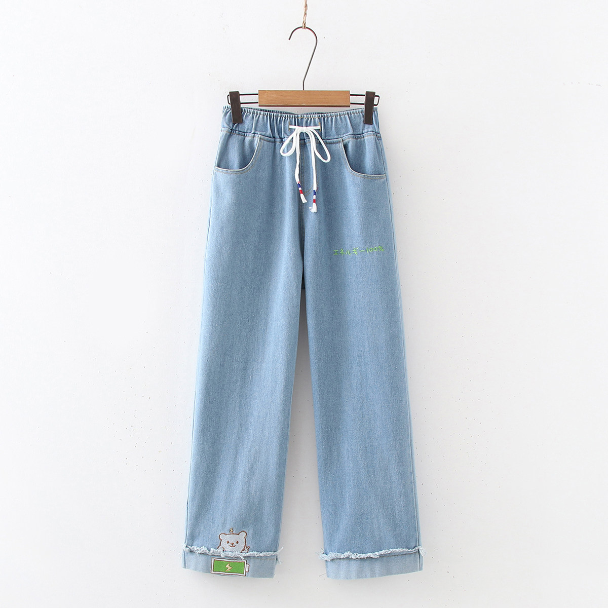 Японские осенние милые брендовые джинсы, штаны для школьников и студентов, с медвежатами, с вышивкой, подходят для подростков