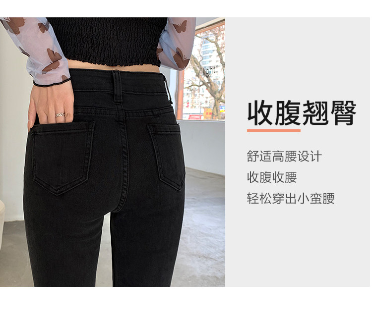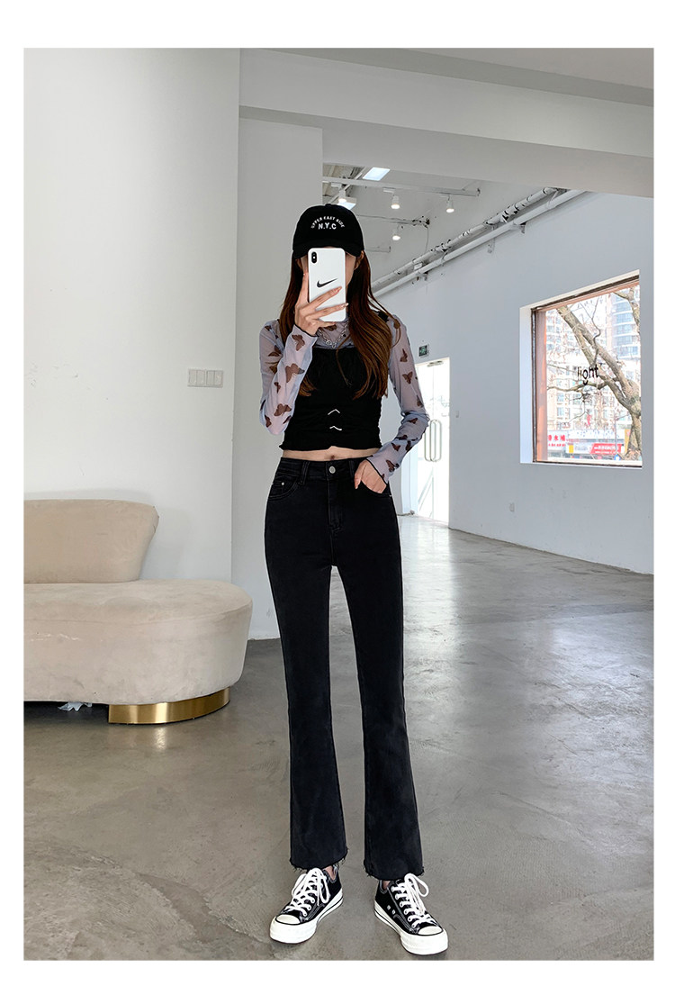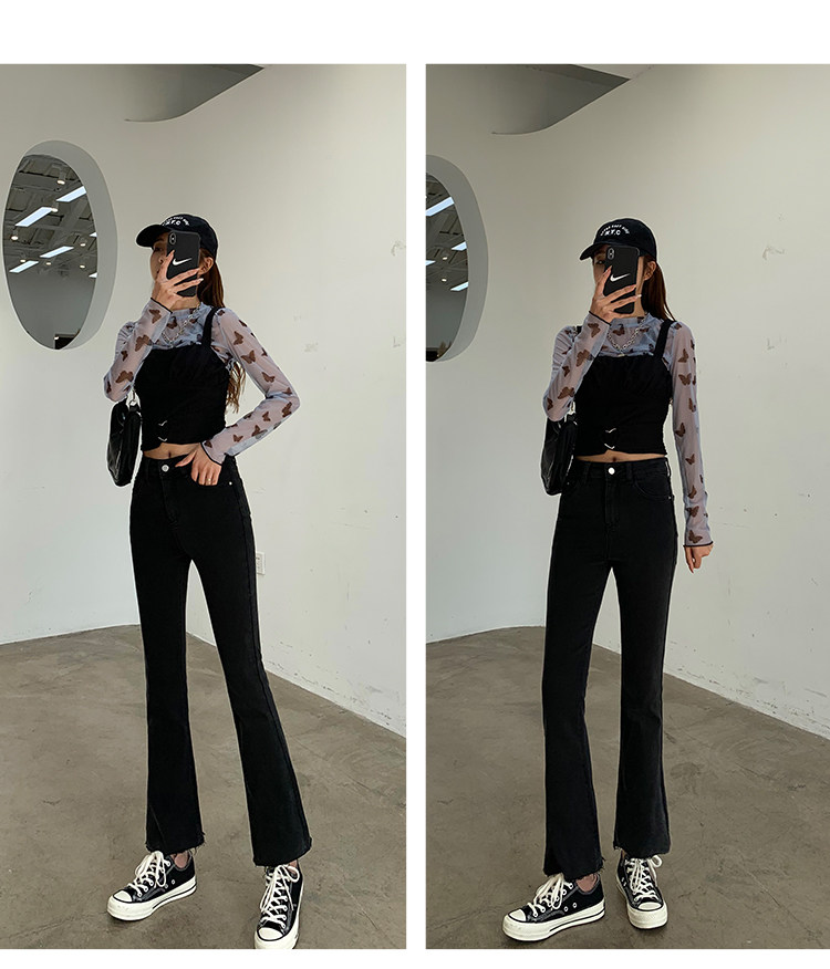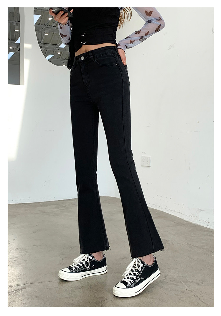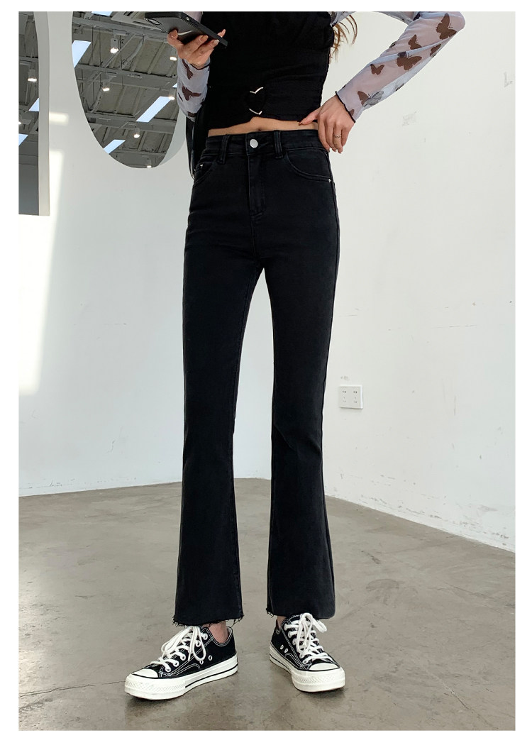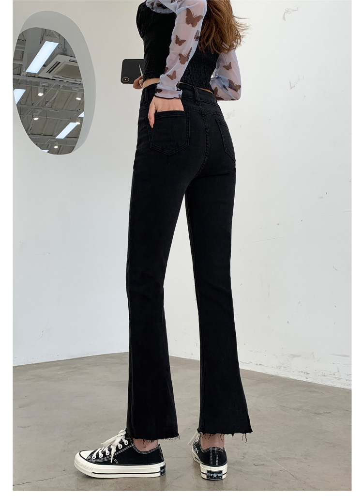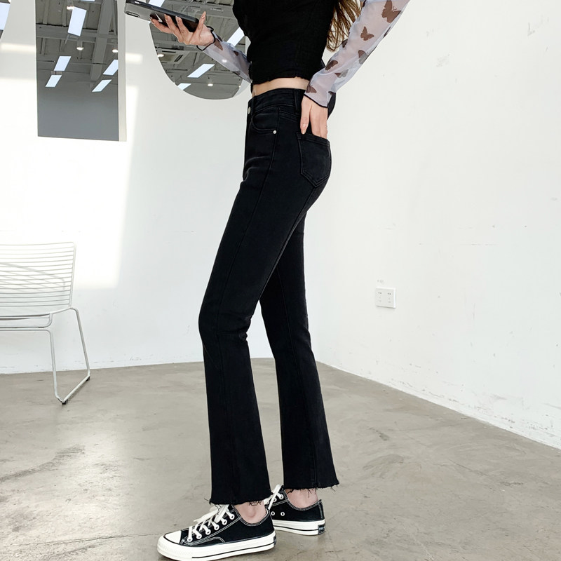 Черные джинсы, осенние штаны, эластичные леггинсы, приталенные штаны-клёш, в корейском стиле, высокая талия, свободный прямой крой