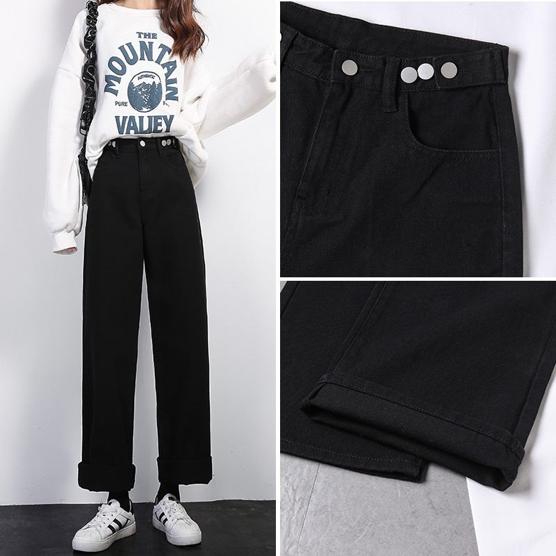 Черные прямые свободные джинсы, штаны, большой размер