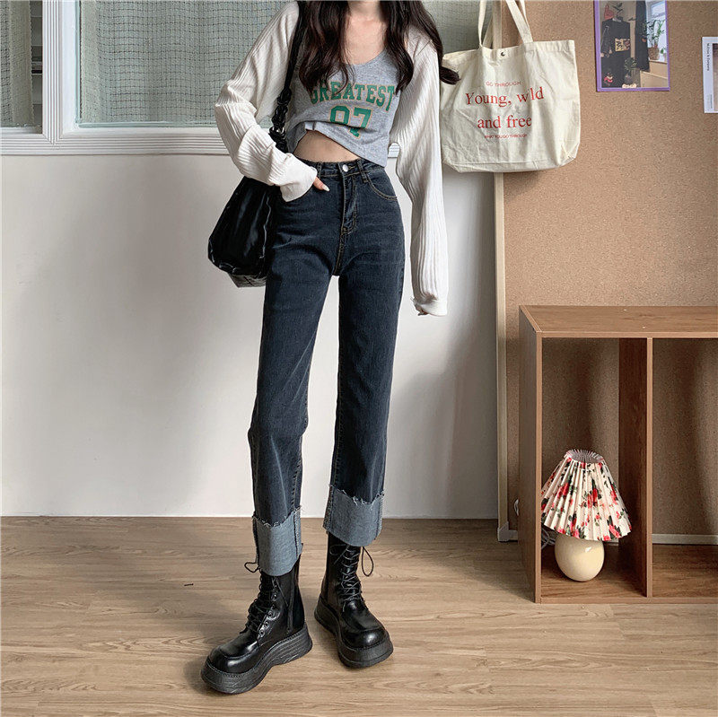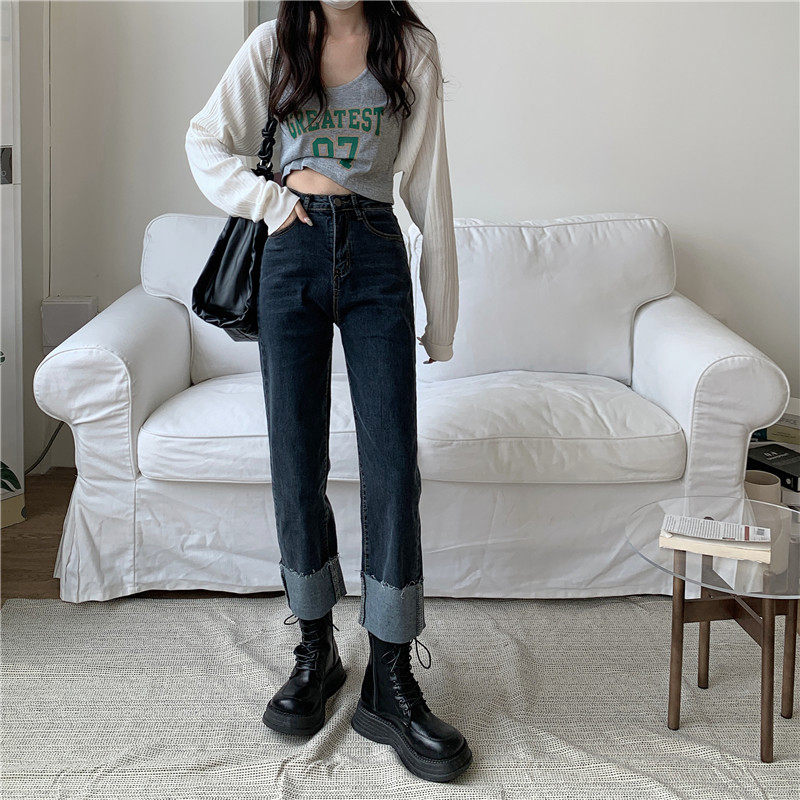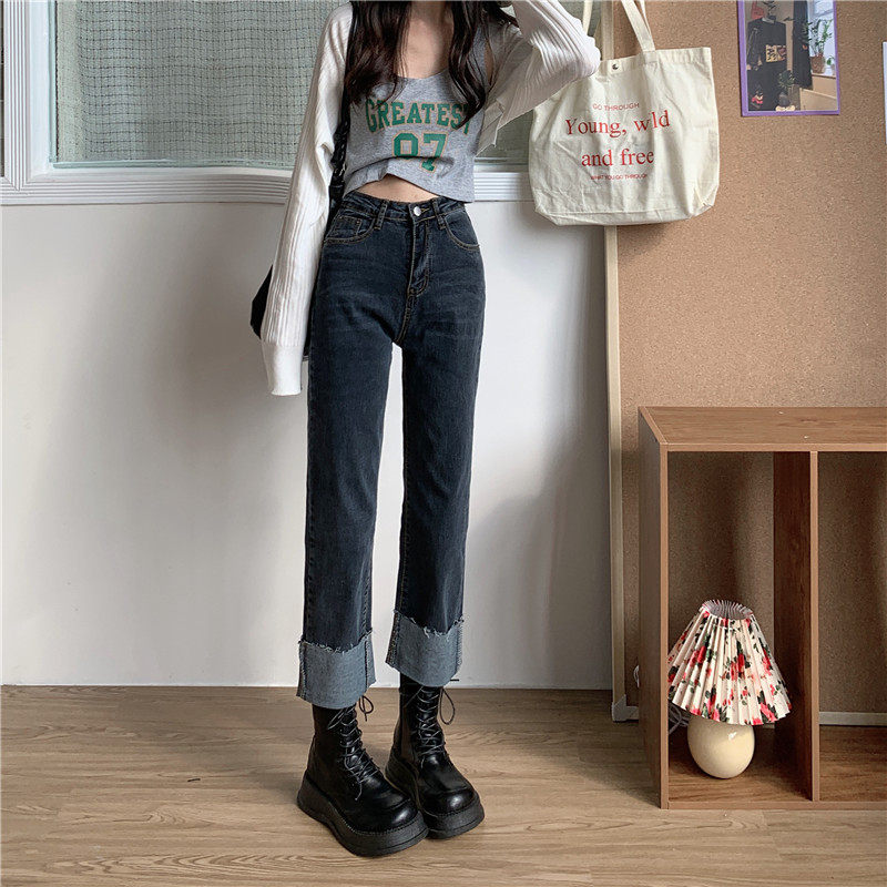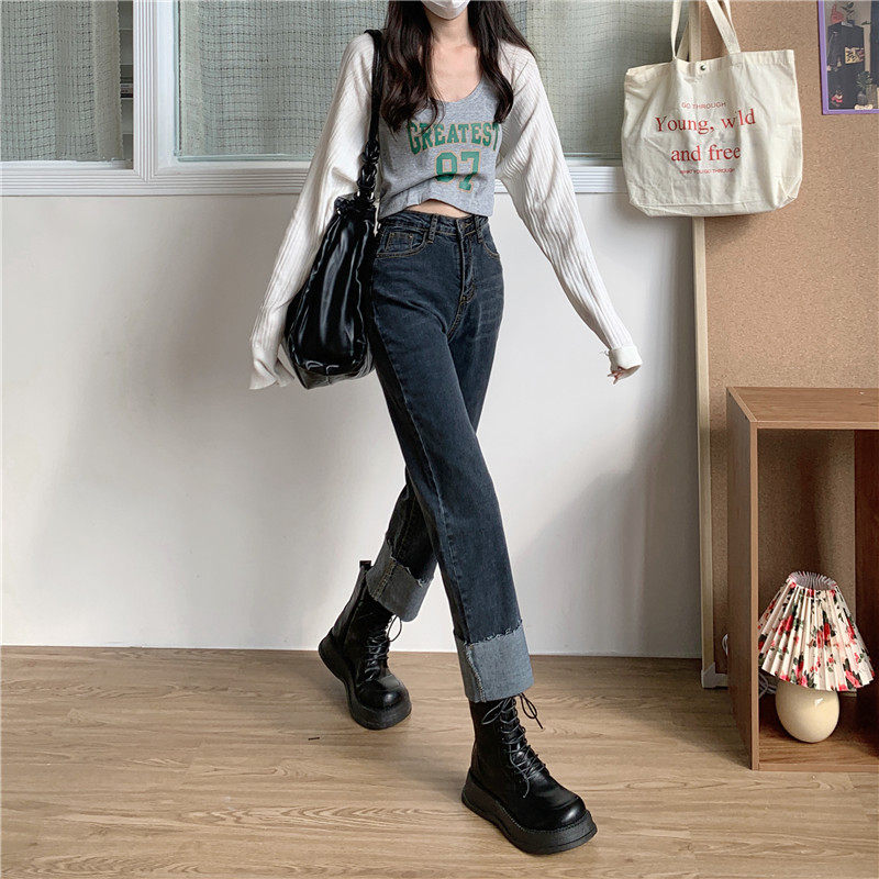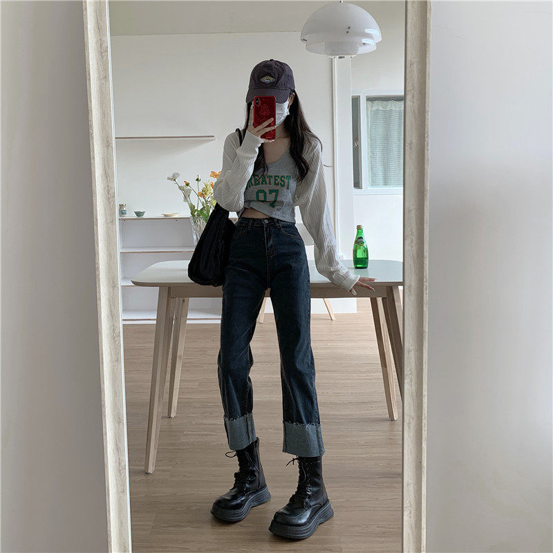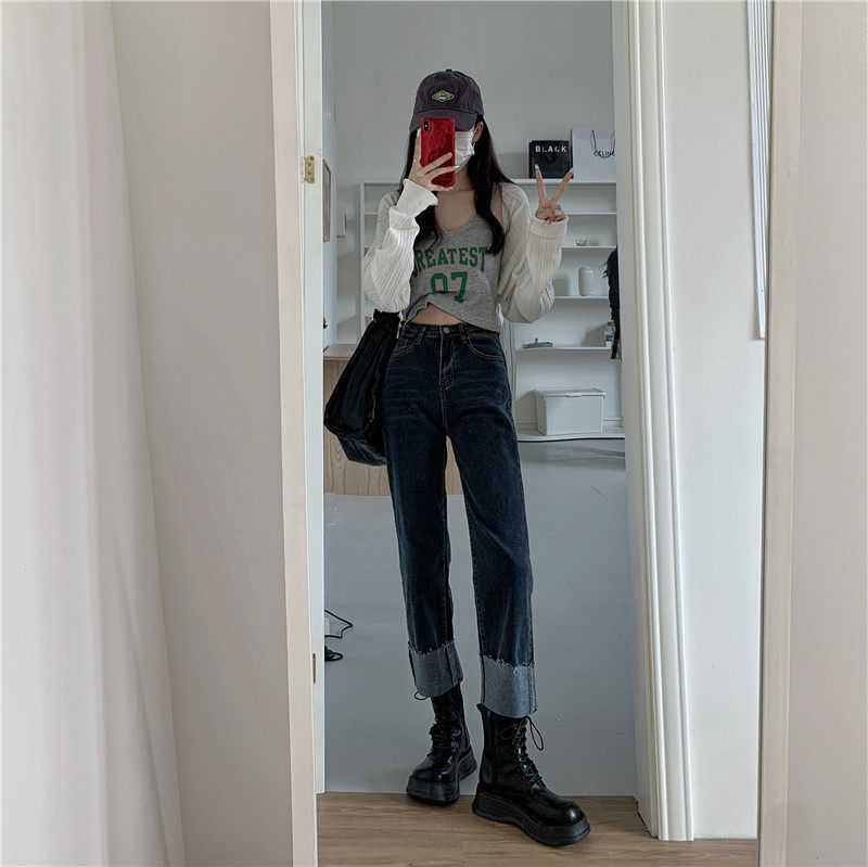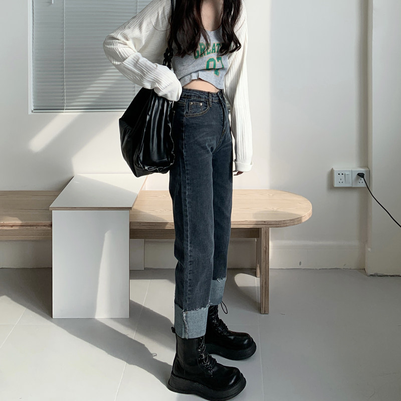 Tide, осенние джинсы, штаны, свободный прямой крой, коллекция 2023, подходят для подростков, большой размер, высокая талия