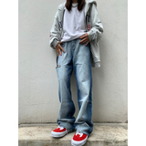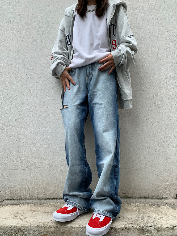 Джинсы подходит для мужчин и женщин, штаны, градиент, оверсайз, высокая талия