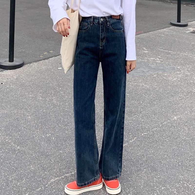 Tide, штаны, осенние приталенные джинсы, свободный прямой крой, по фигуре, высокая талия