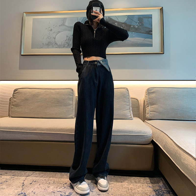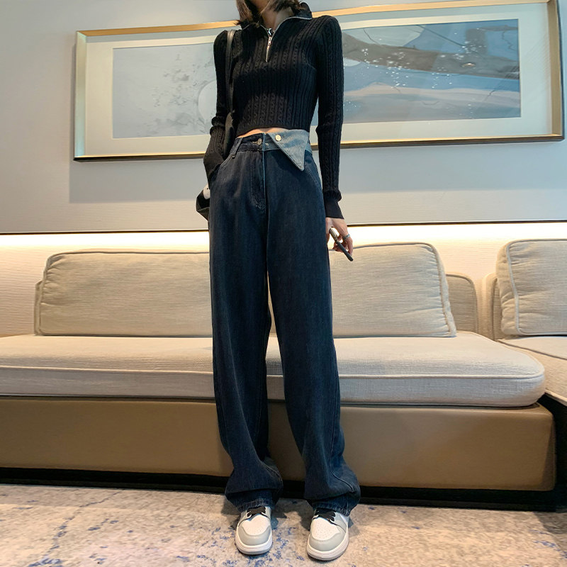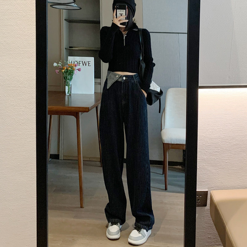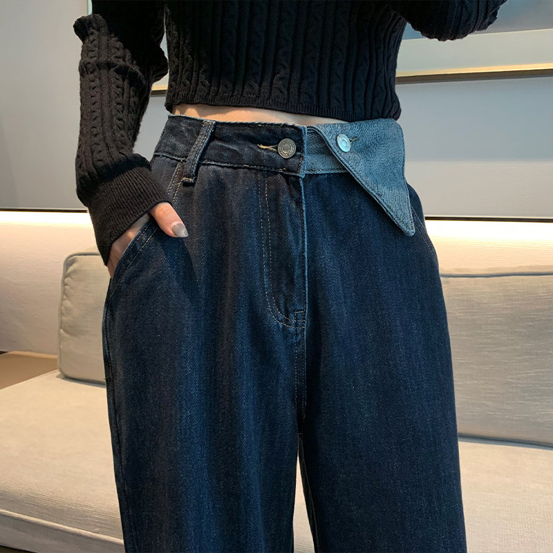 Синие осенние джинсы, штаны, популярно в интернете, свободный прямой крой, коллекция 2022, высокая талия