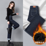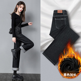 Джинсы с начесом, штаны, приталенные леггинсы, свободный прямой крой, 2021 года, высокая талия, по фигуре, подходит для подростков