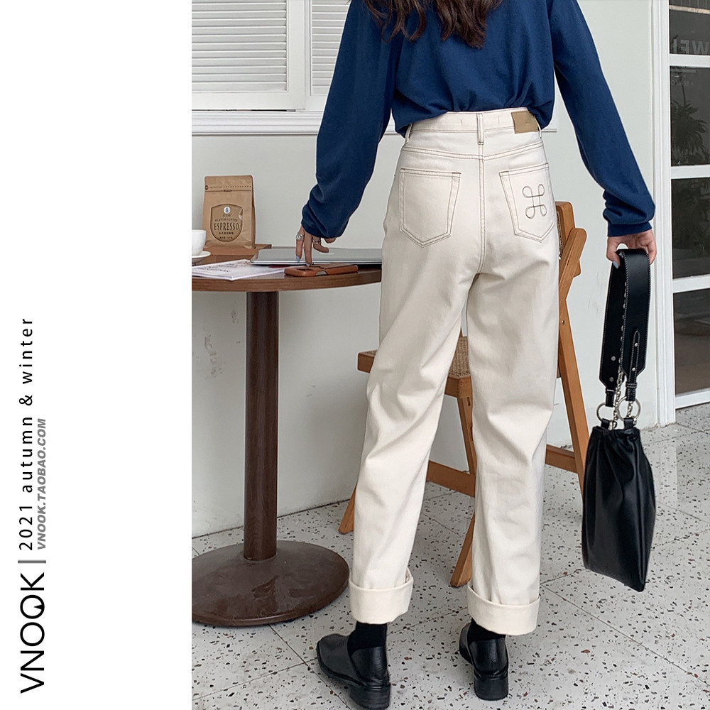 Прямые свободные джинсы, штаны, ретро леггинсы, с вышивкой, высокая талия, свободный крой