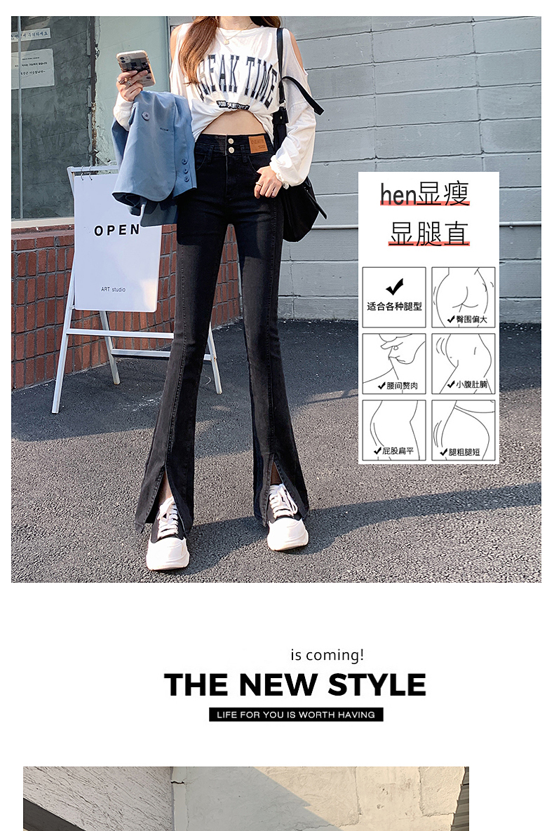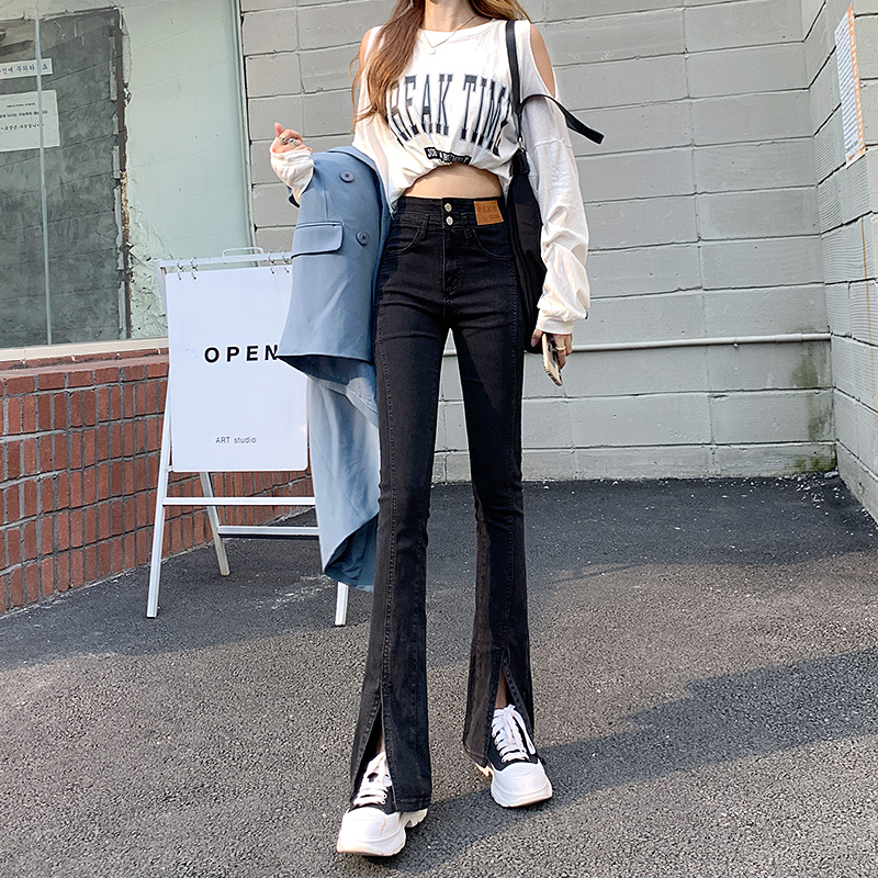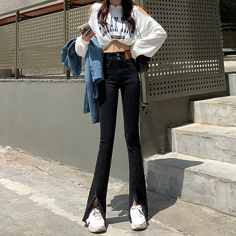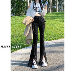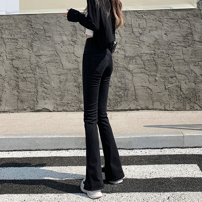 Черные джинсовые осенние джинсы, штаны, приталенные штаны-клёш, новая коллекция, высокая талия, по фигуре, подходит для подростков