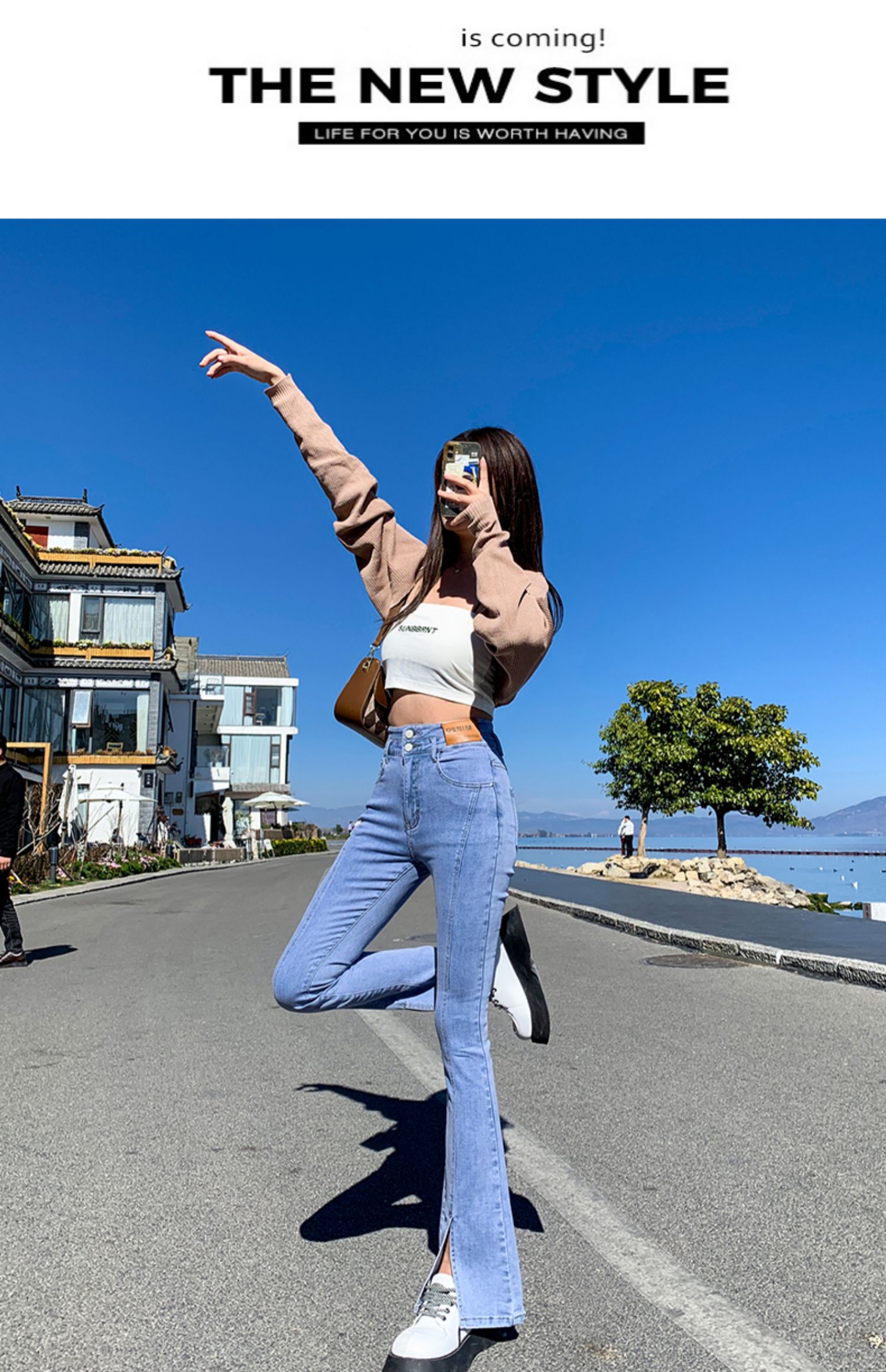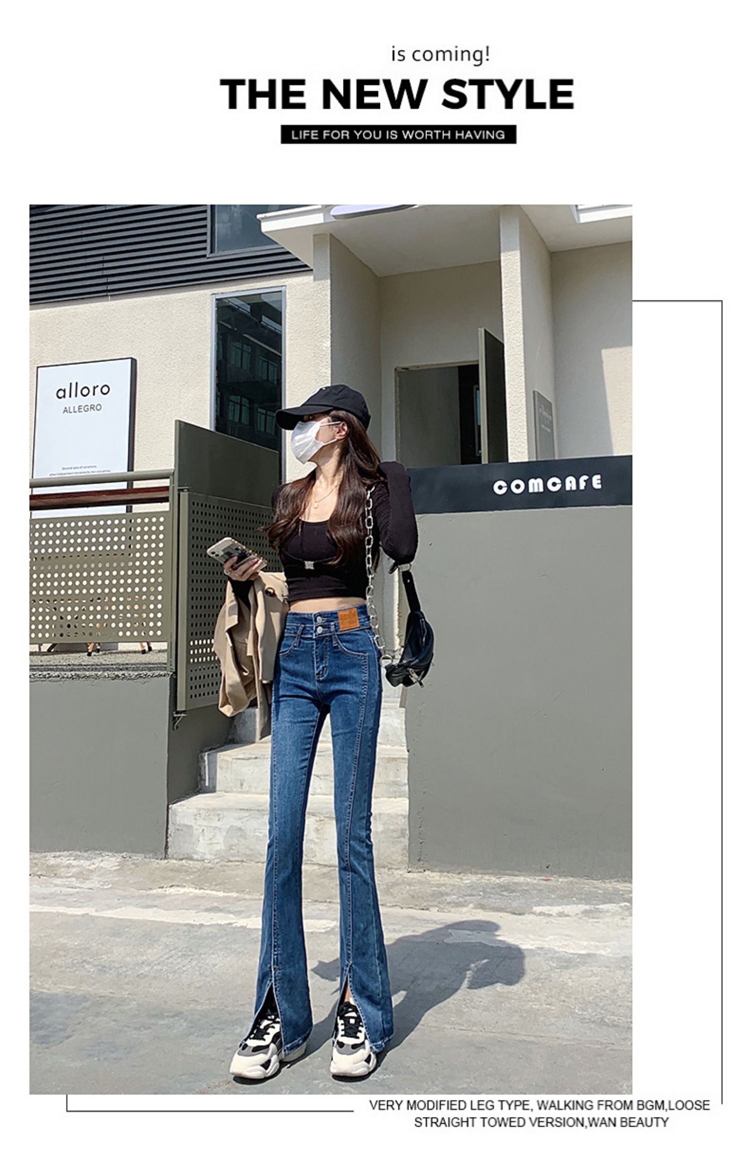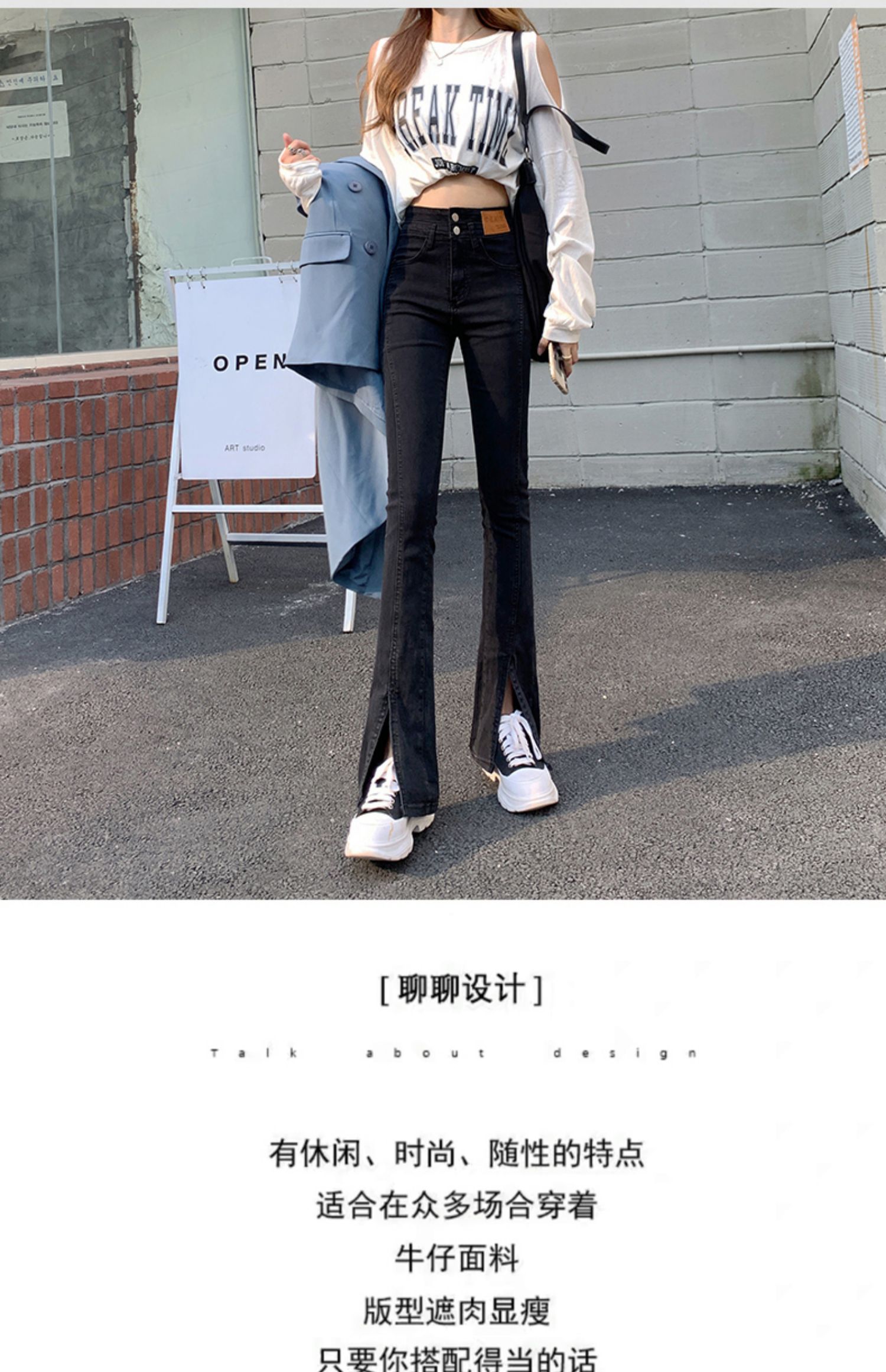 Черные джинсовые осенние джинсы, штаны, приталенные штаны-клёш, новая коллекция, высокая талия, по фигуре, подходит для подростков