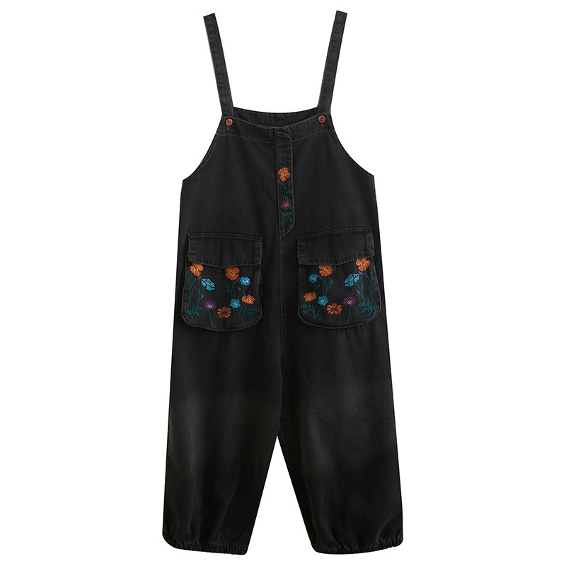 Ретро джинсовый комбинезон, штаны, в западном стиле, с вышивкой, оверсайз, эффект подтяжки