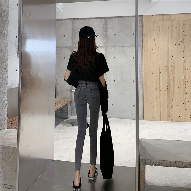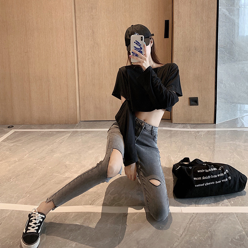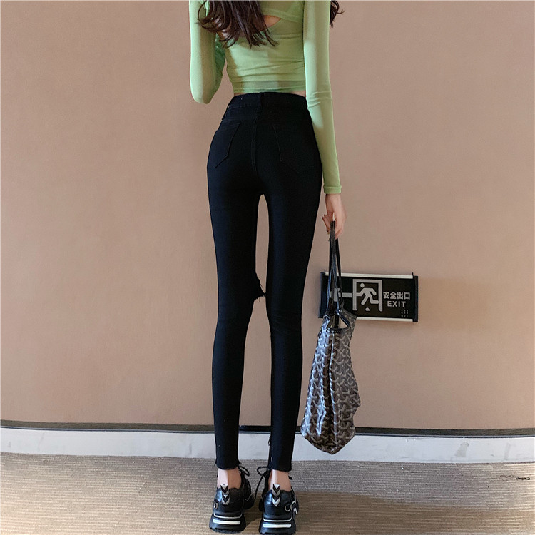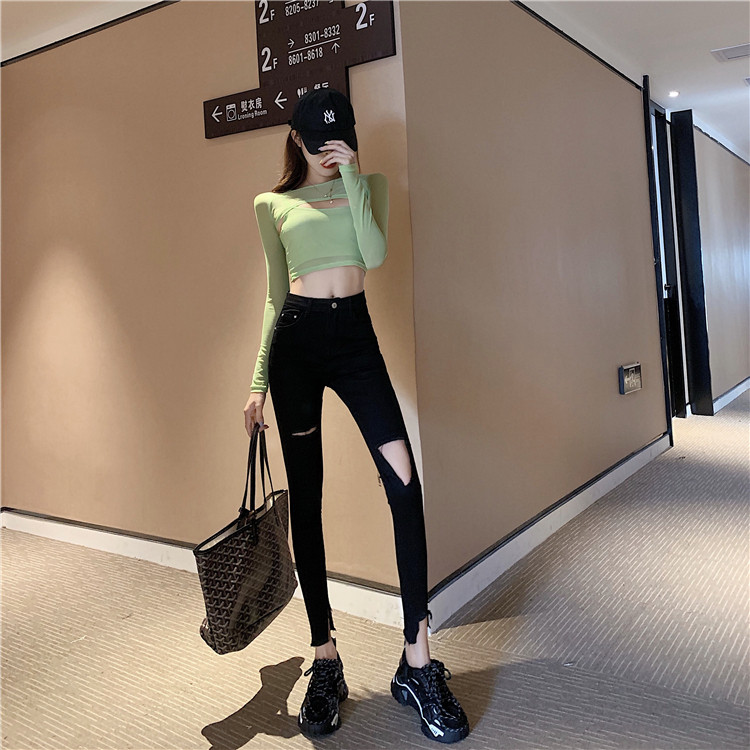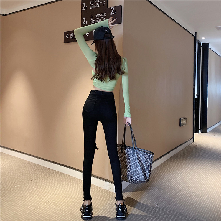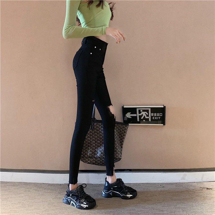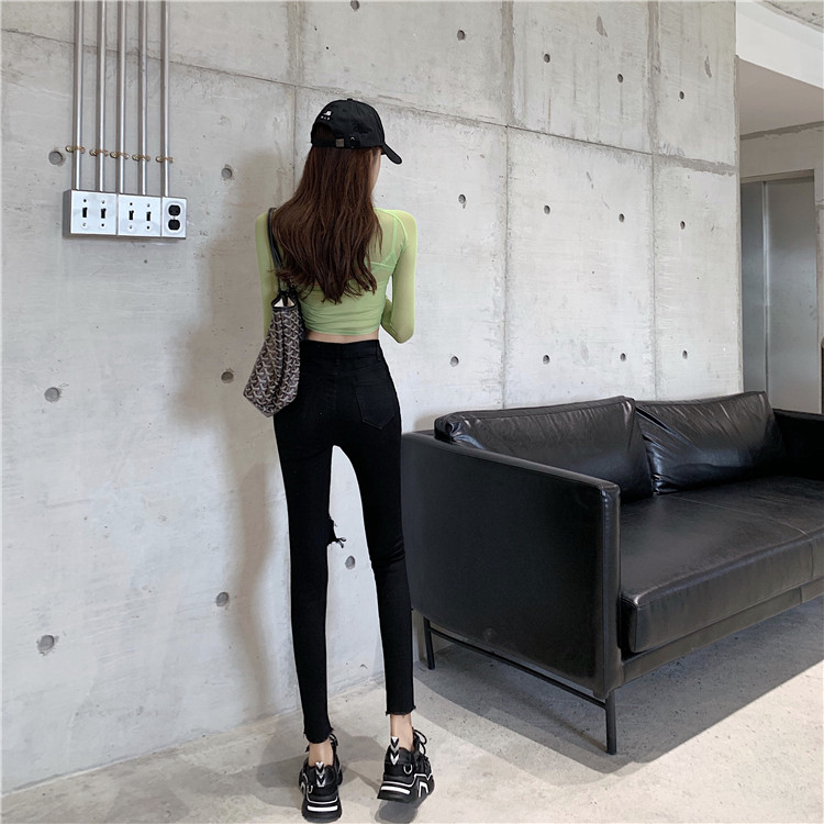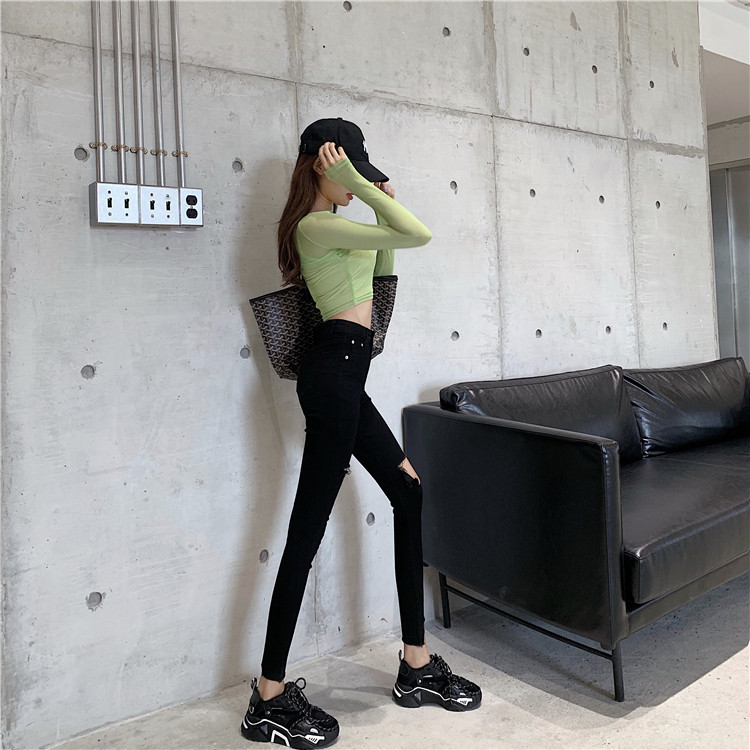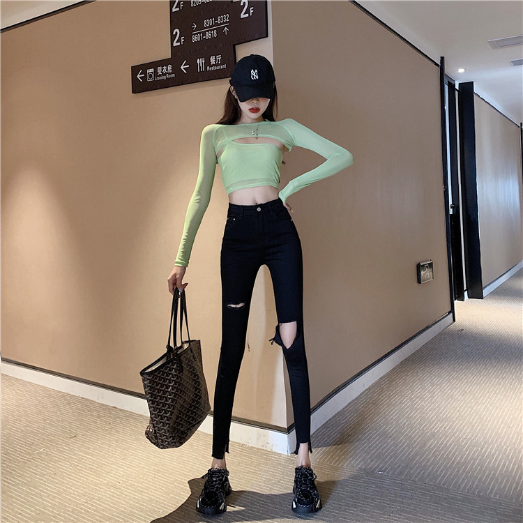 Летние джинсы, штаны, тонкий черный комбинезон, высокая талия, в обтяжку