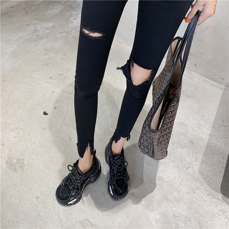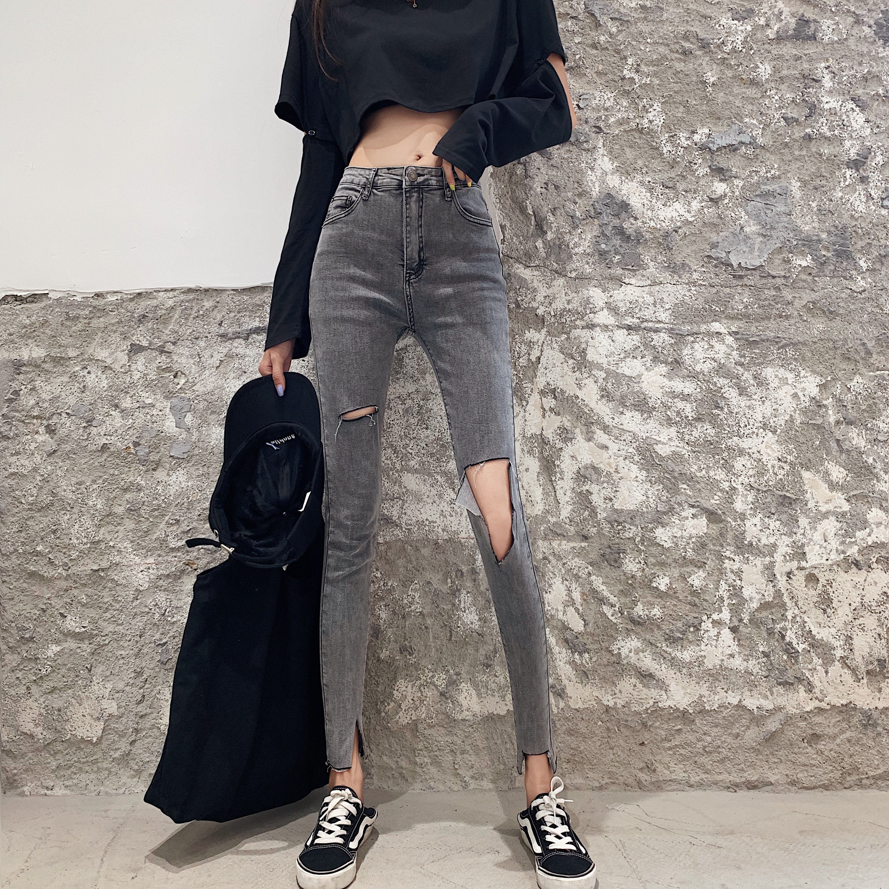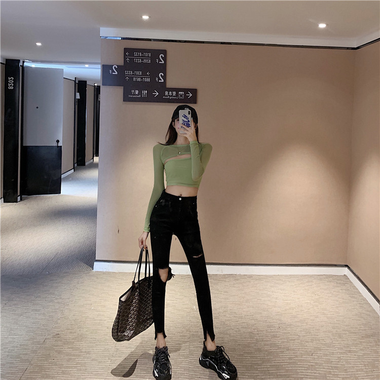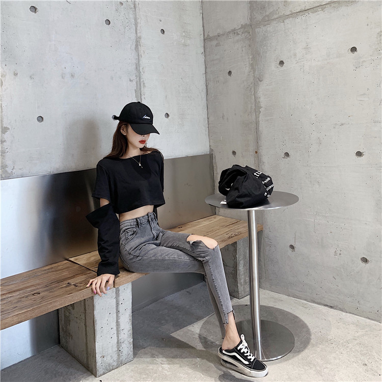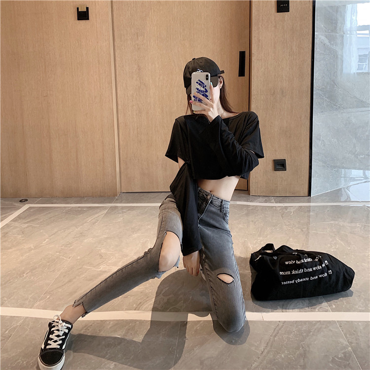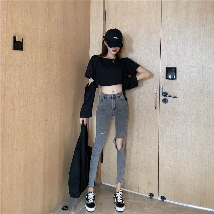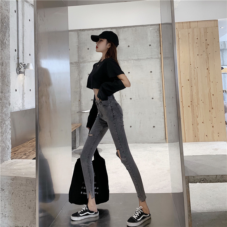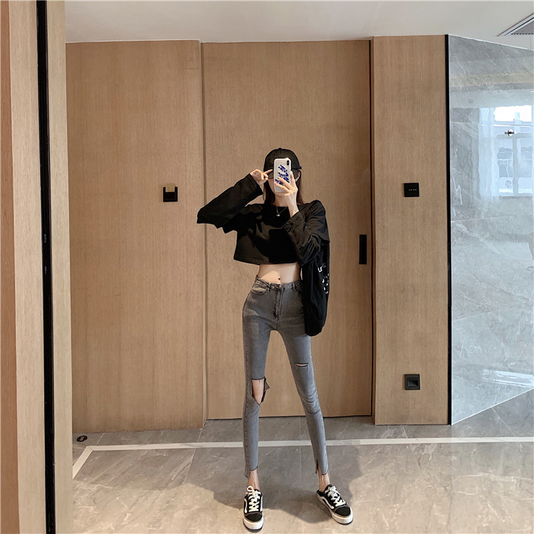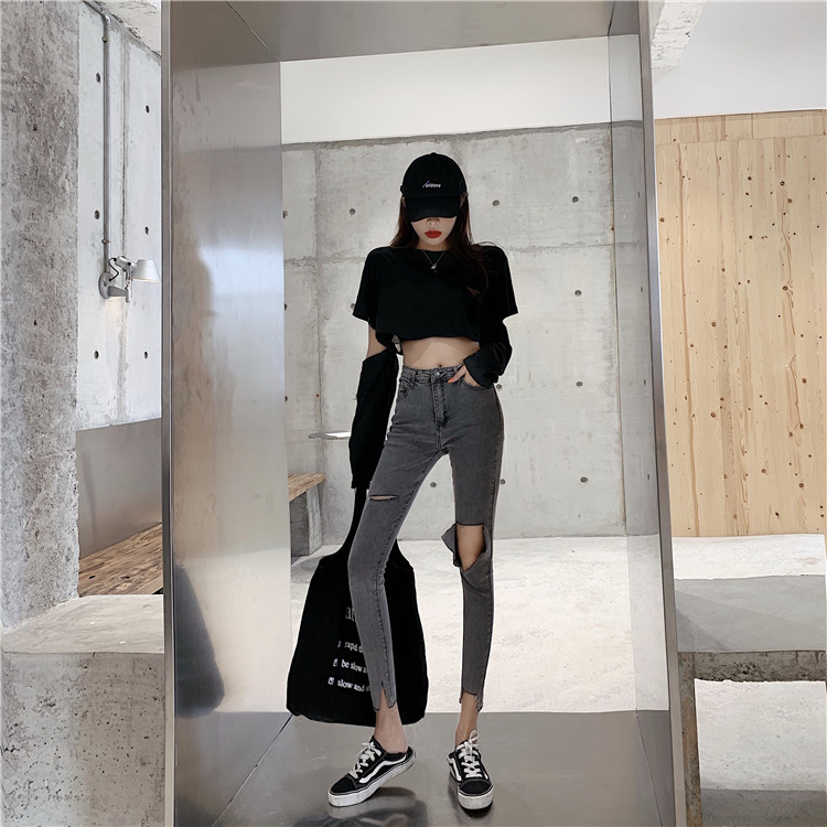 Летние джинсы, штаны, тонкий черный комбинезон, высокая талия, в обтяжку