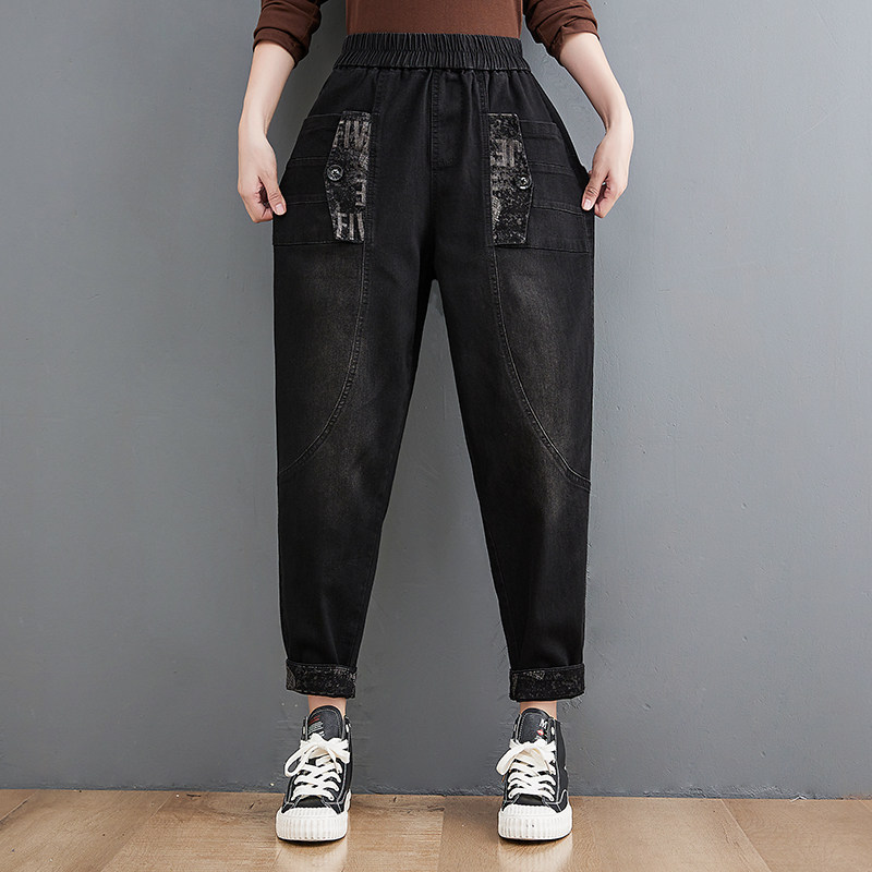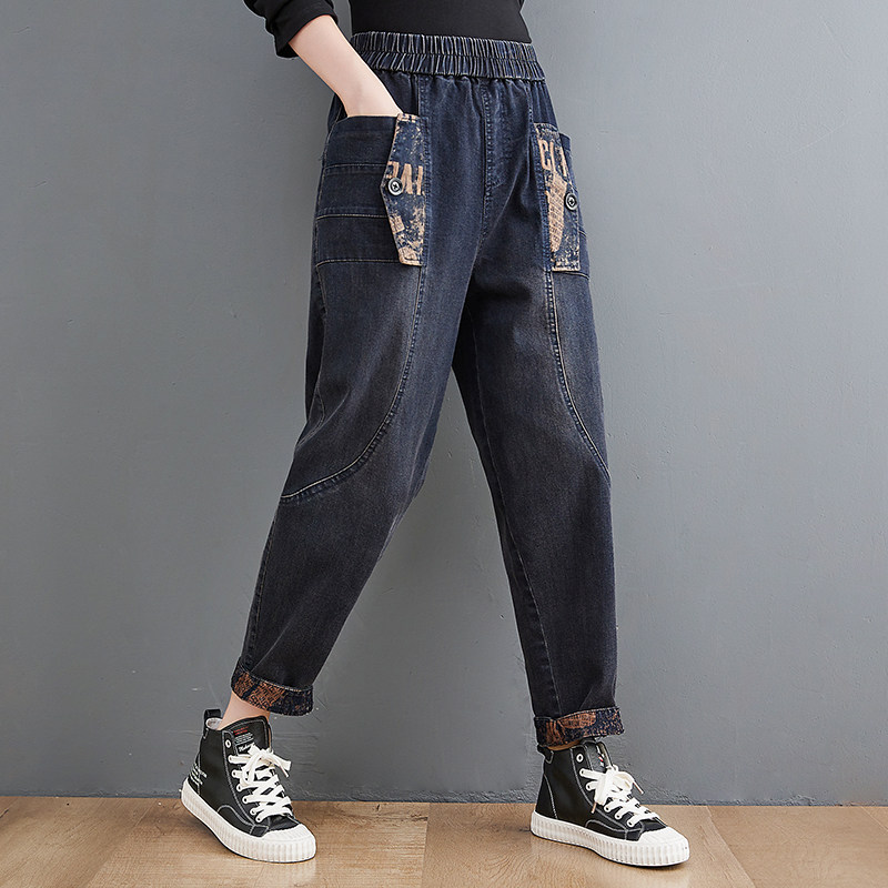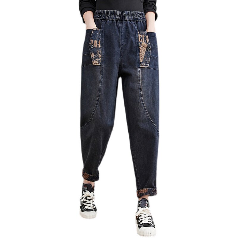 Осенние джинсы-шаровары, леггинсы, штаны, эластичная талия, большой размер, свободный крой, по фигуре