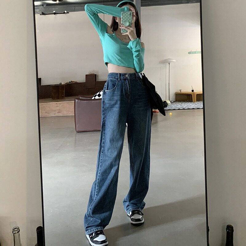 Tide, джинсы, осенние штаны, высокая талия, 2021 года, свободный прямой крой