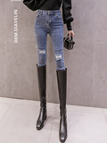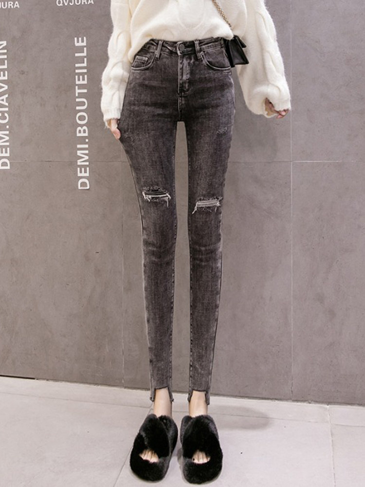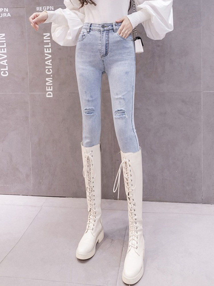 Приталенные штаны, эластичные осенние демисезонные джинсы, высокая талия
