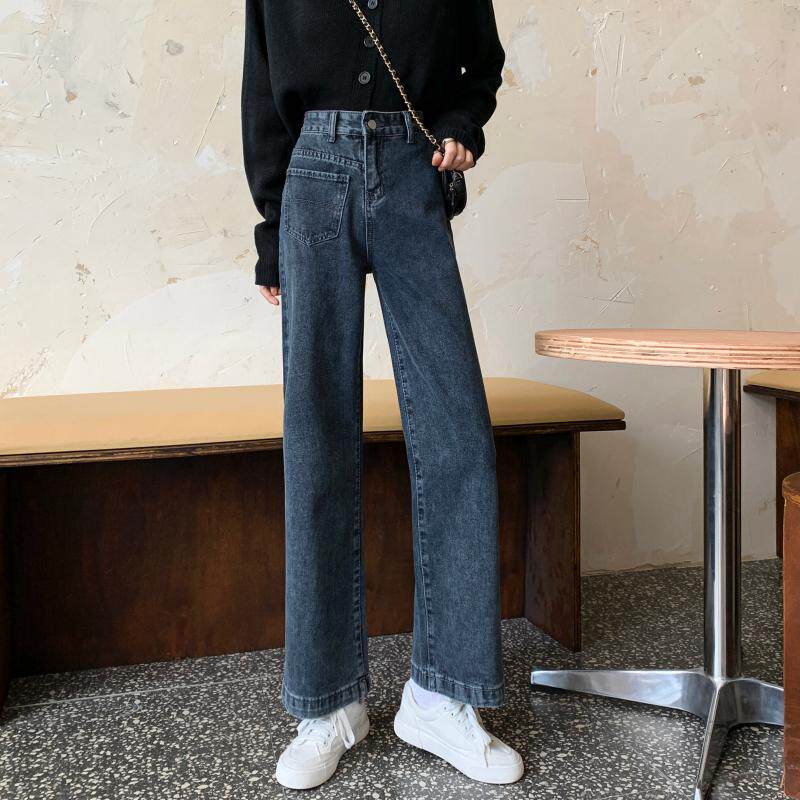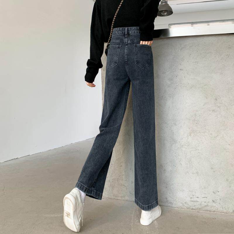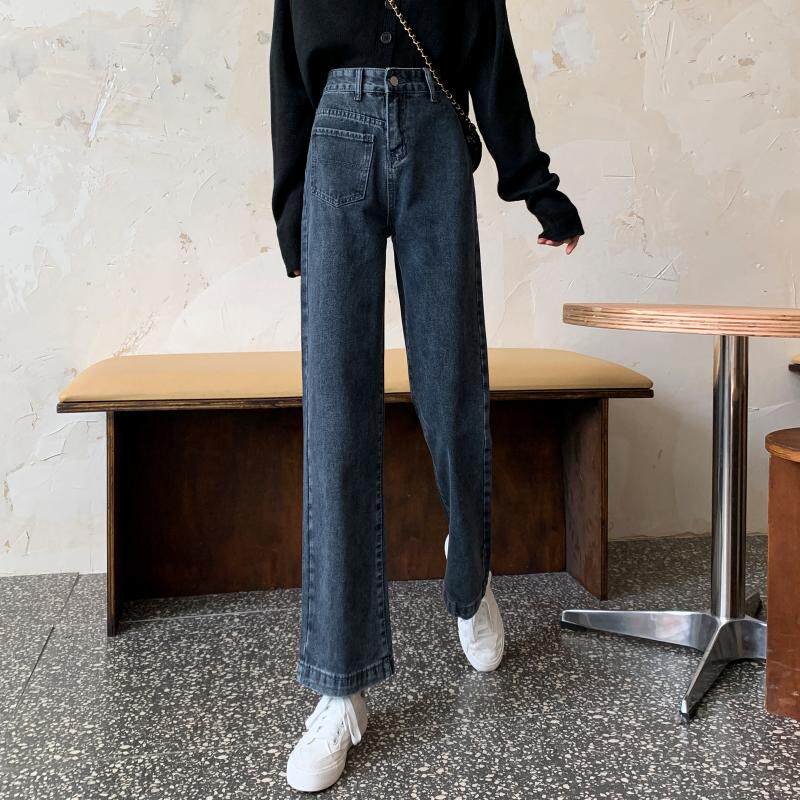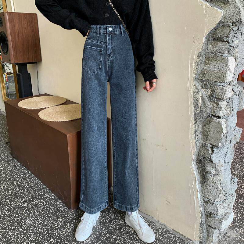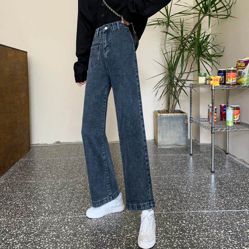 Осенние джинсы, штаны, большой размер, свободный прямой крой, высокая талия