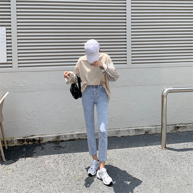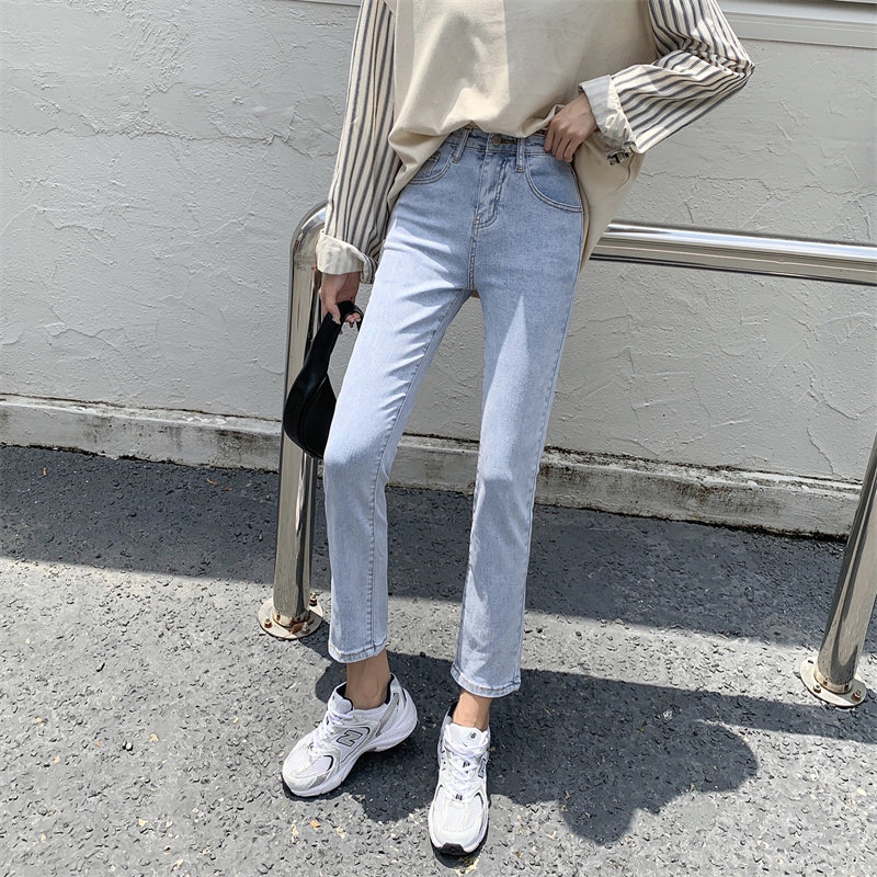 Светлые приталенные джинсы, штаны, коллекция 2023, высокая талия, свободный прямой крой, осенние