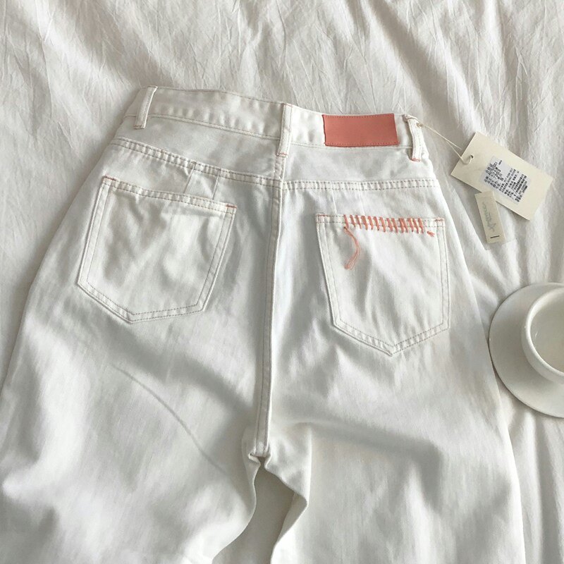Осенние ретро кремовые джинсы, штаны, в западном стиле, высокая талия, свободный прямой крой