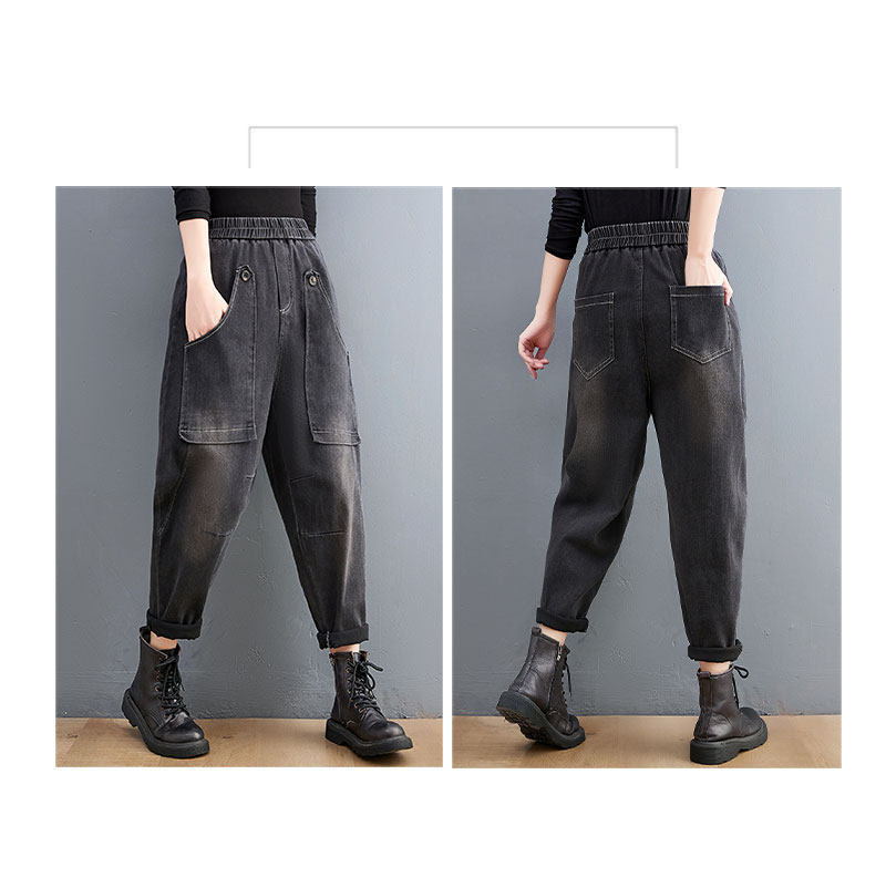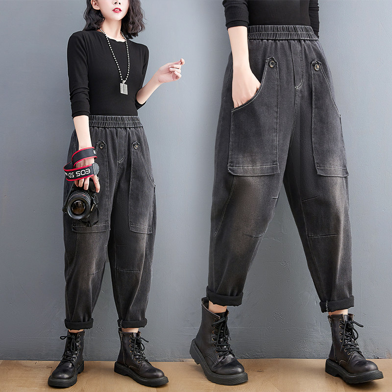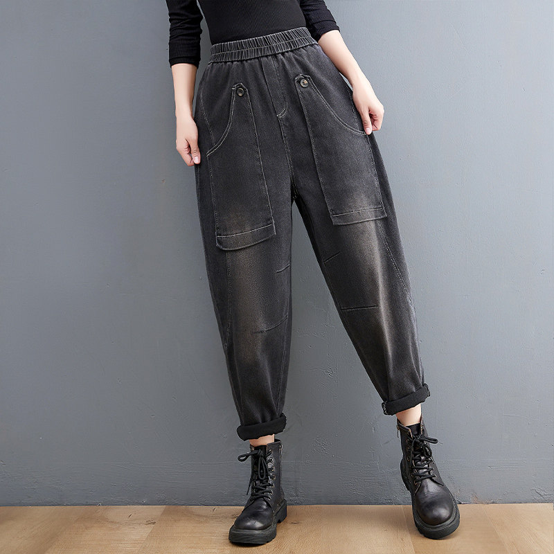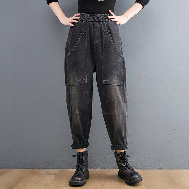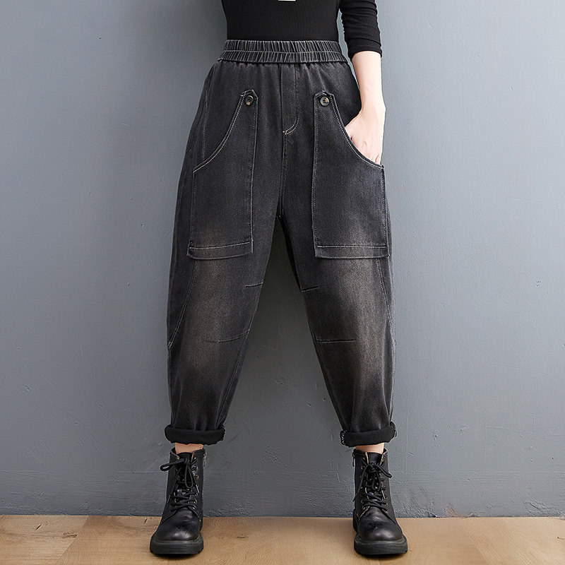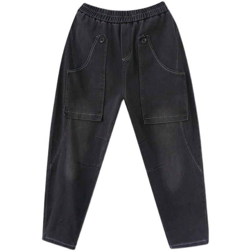 Ретро джинсы, демисезонные штаны для отдыха, эластичная талия, коллекция 2021, оверсайз, по фигуре
