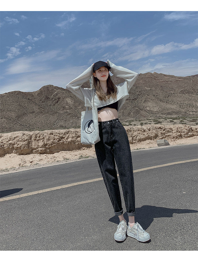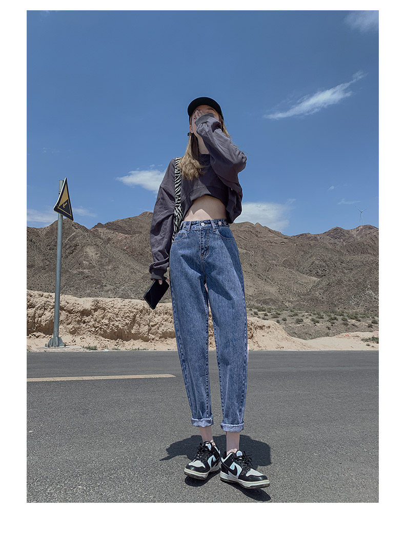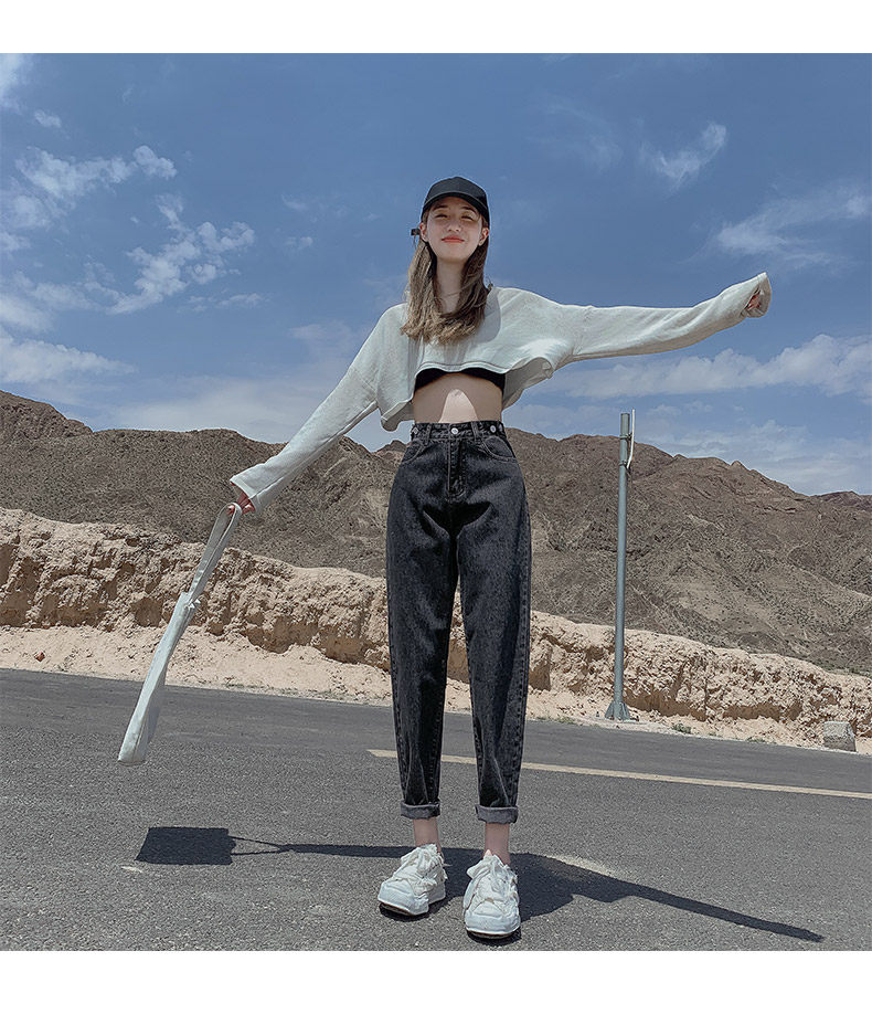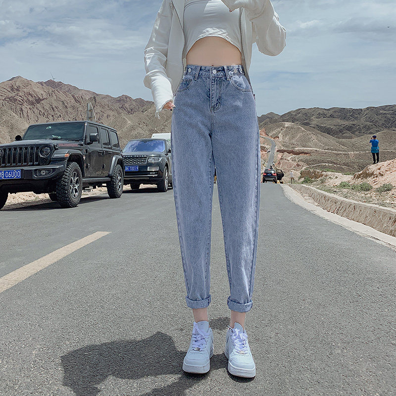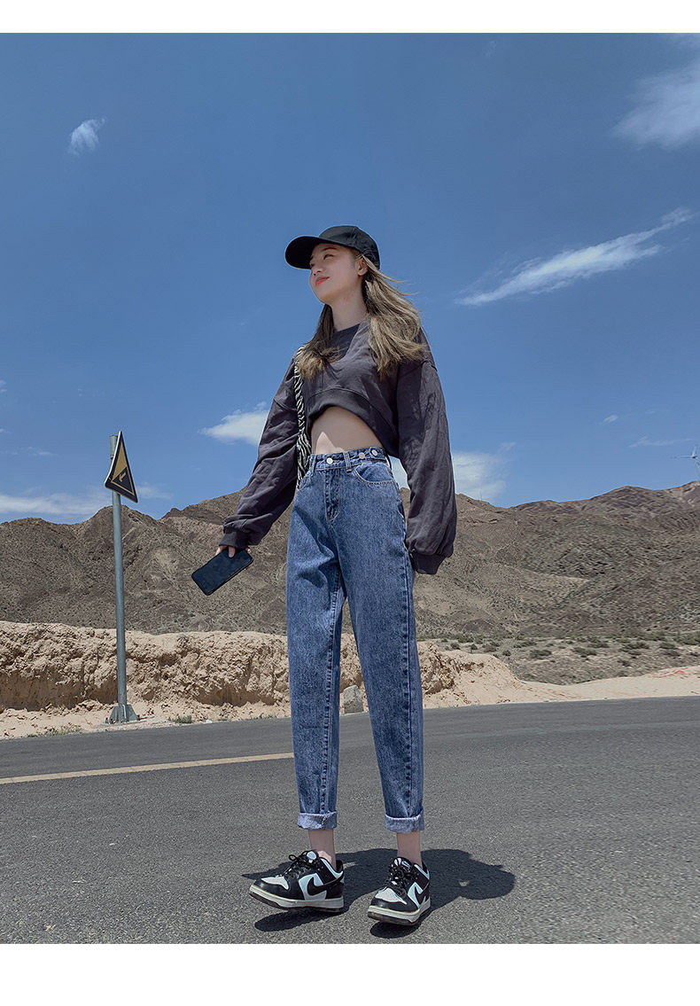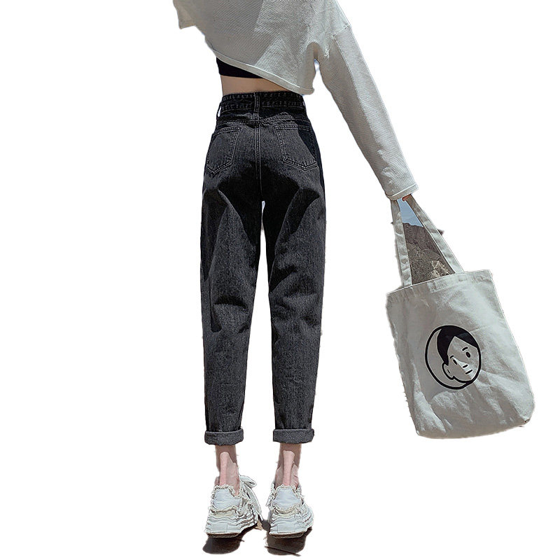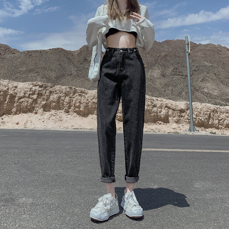 Штаны, приталенные джинсы, свободный прямой крой, высокая талия