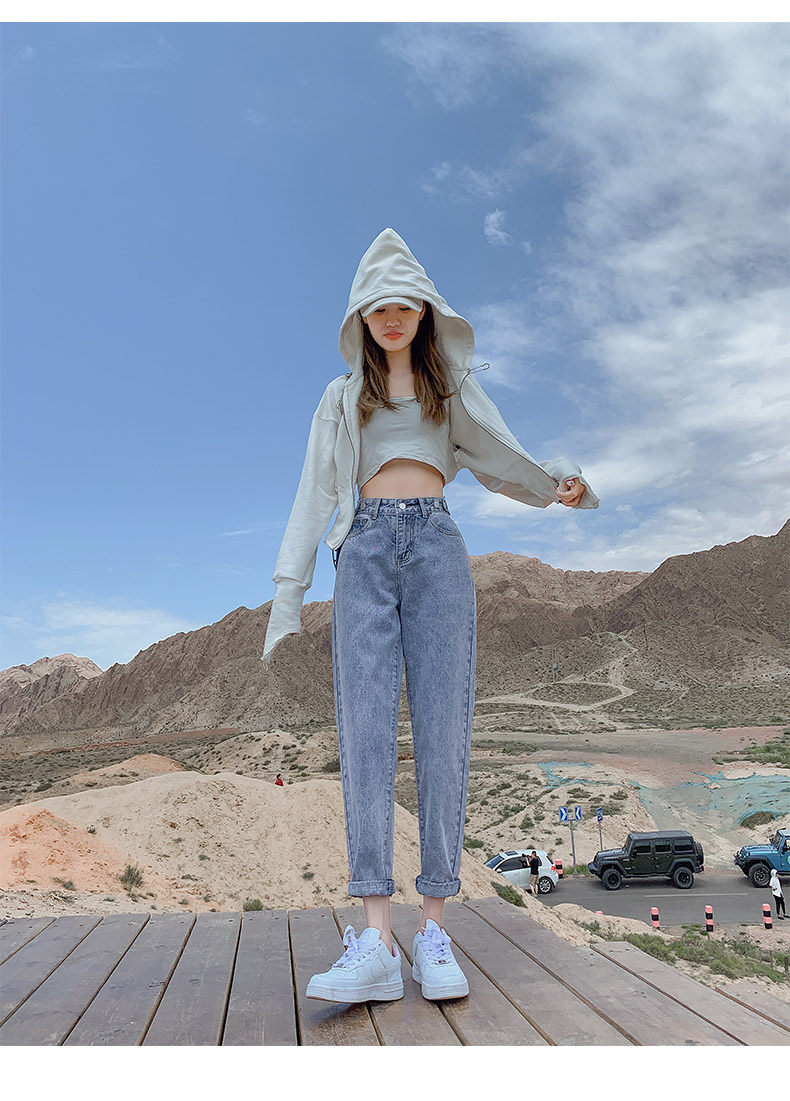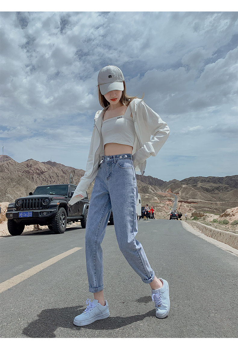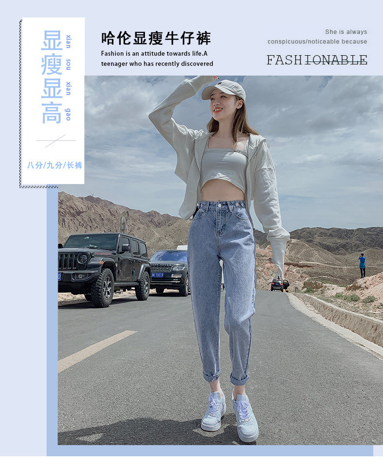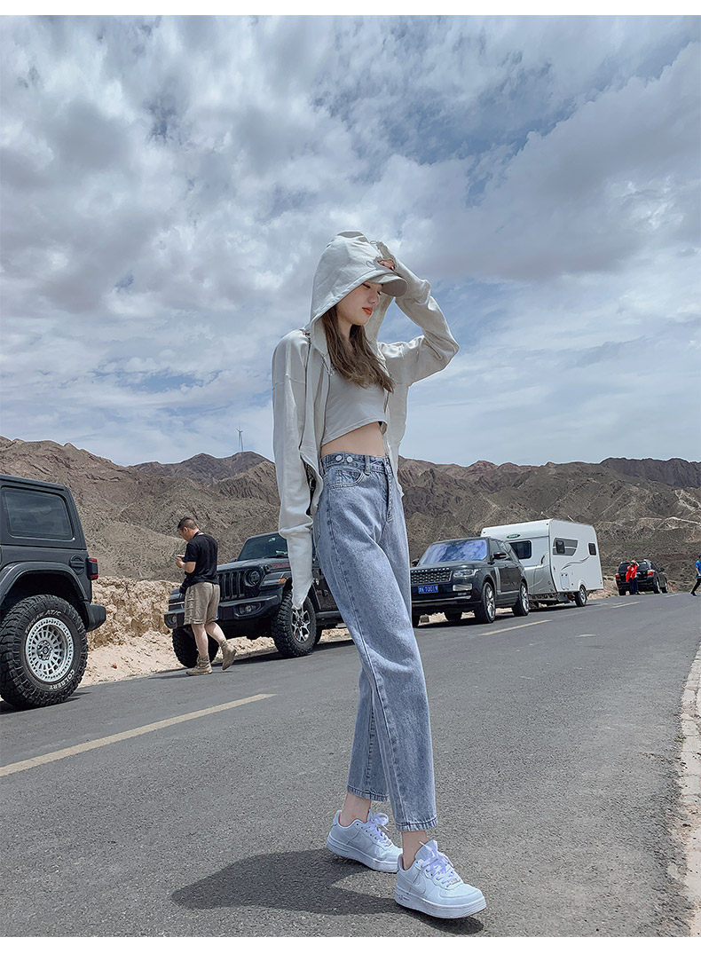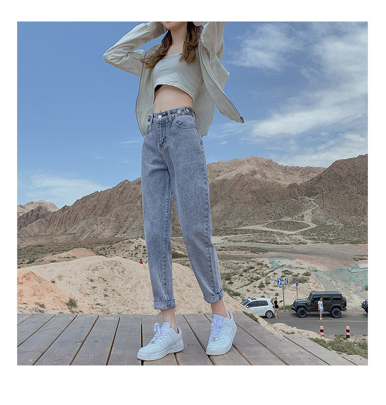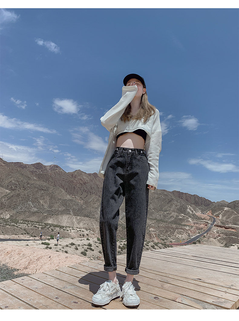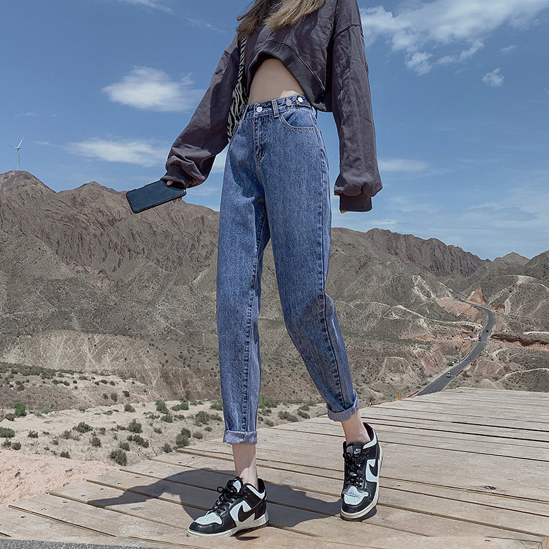 Штаны, приталенные джинсы, свободный прямой крой, высокая талия