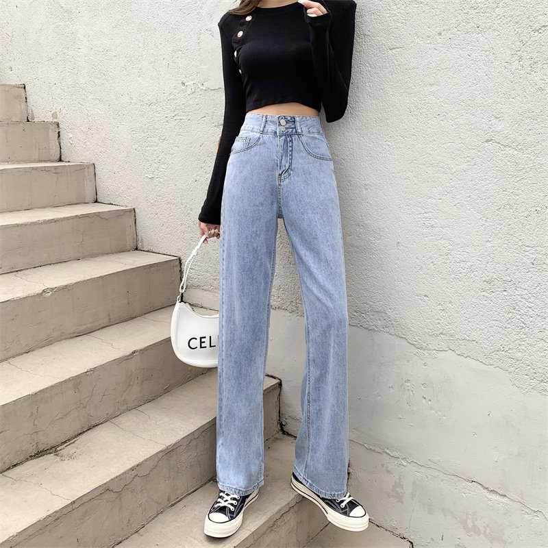 Приталенные осенние джинсы, штаны, высокая талия, свободный крой