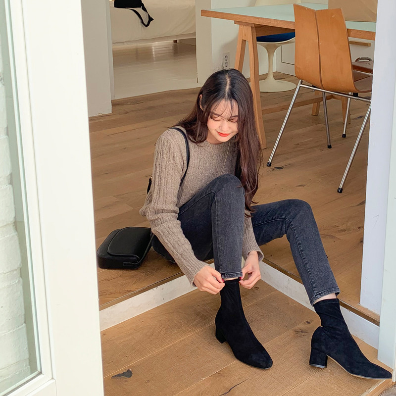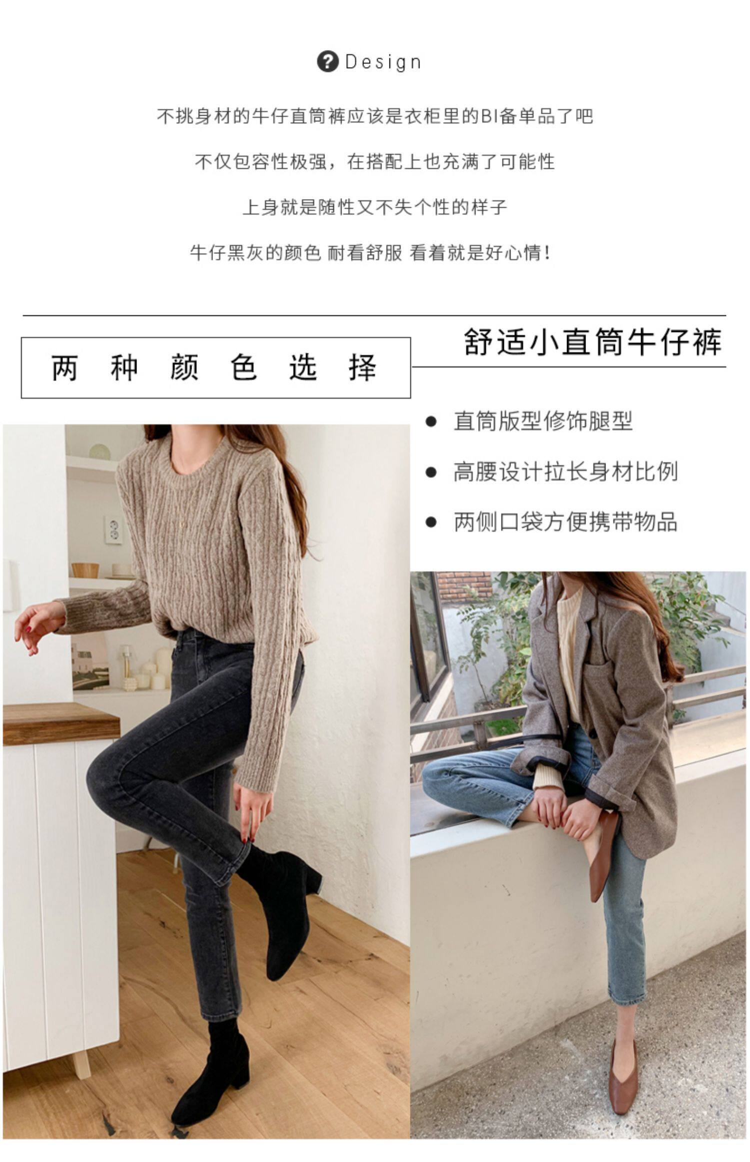Весенние осенние приталенные джинсы, эластичные черные штаны, высокая талия, свободный прямой крой