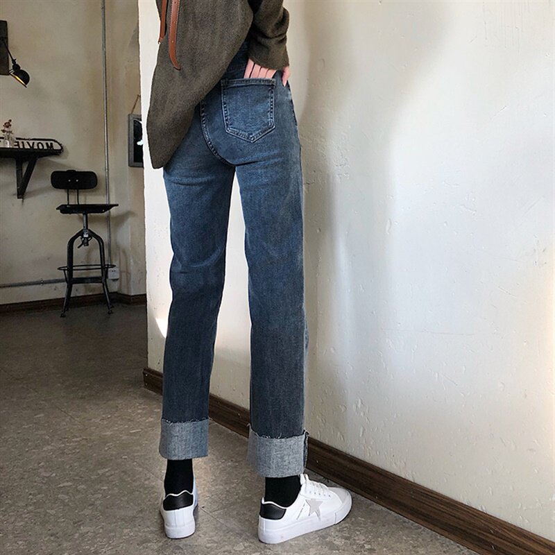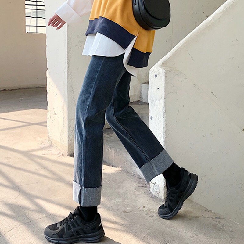 Tide, прямые свободные джинсы, осенние штаны, свободный крой, высокая талия, большой размер
